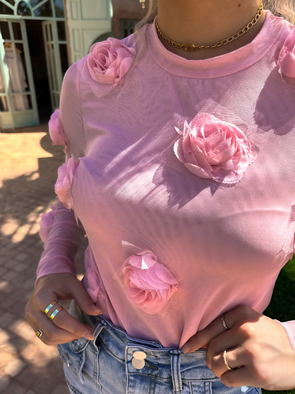 Růžové květinové triko ILLAI s dlouhým rukávem
