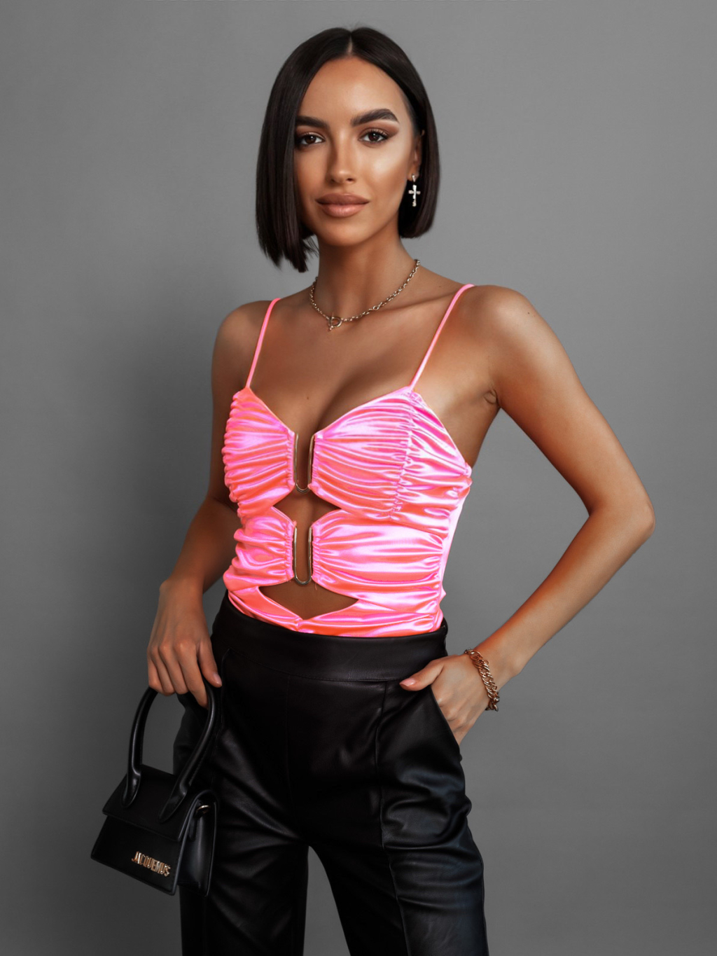 Růžový nařasený top CORBIN s průstřihy