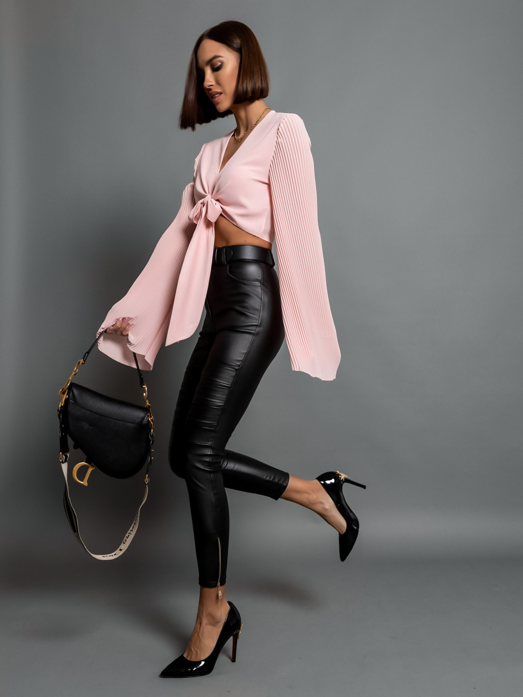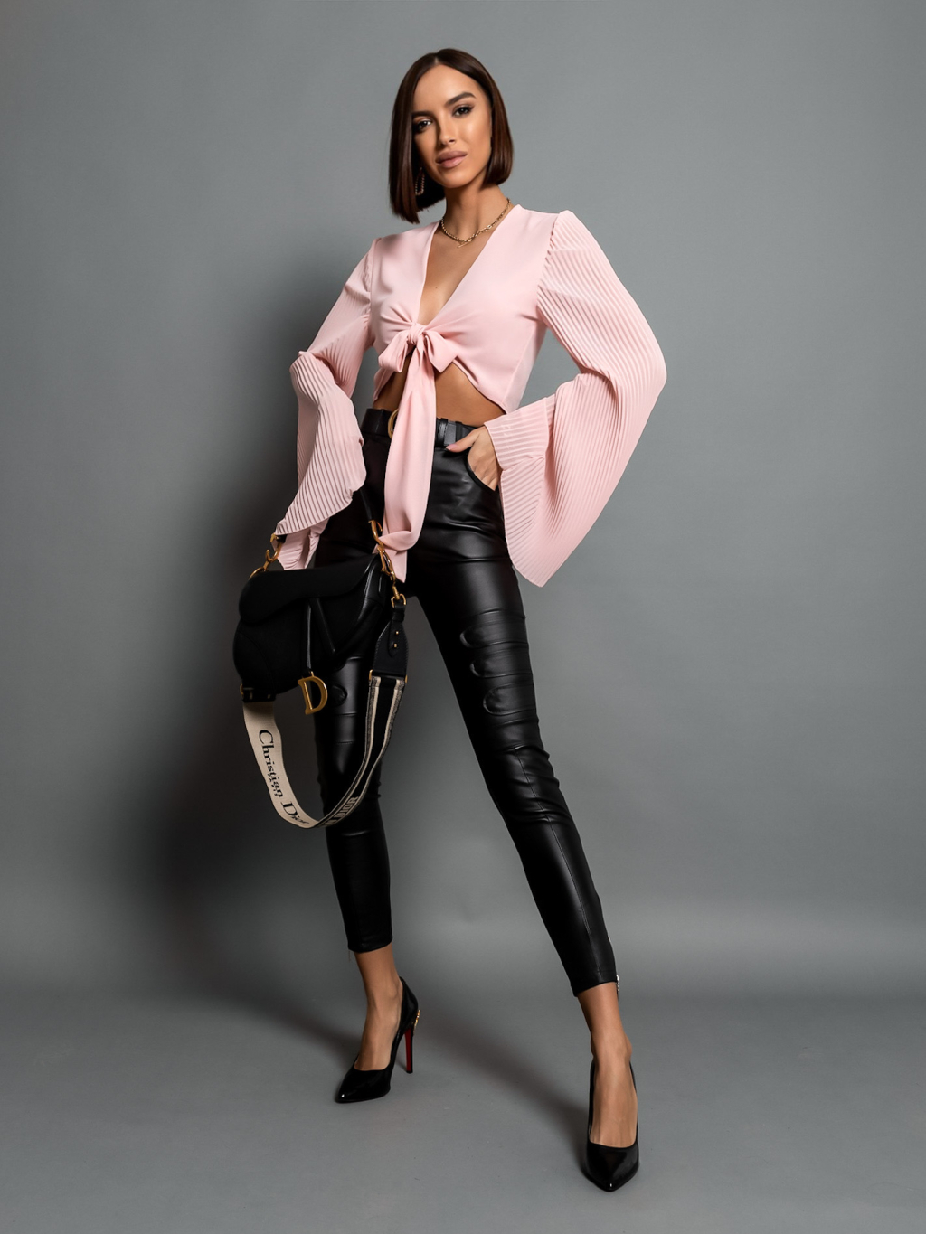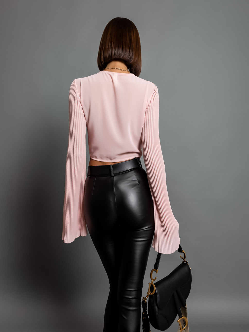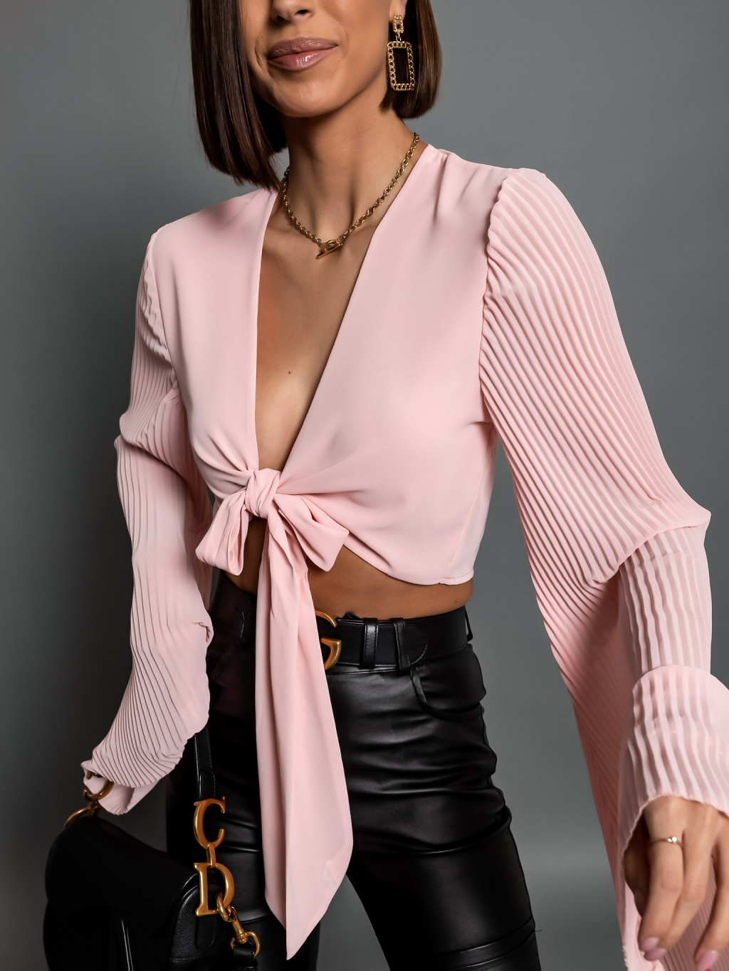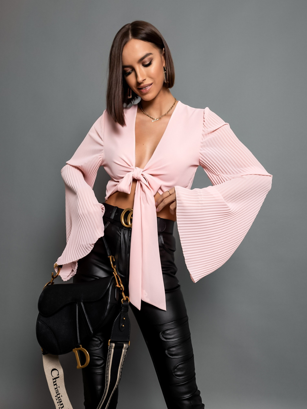 Růžový zavinovací top PETALS s rozšířenými rukávy