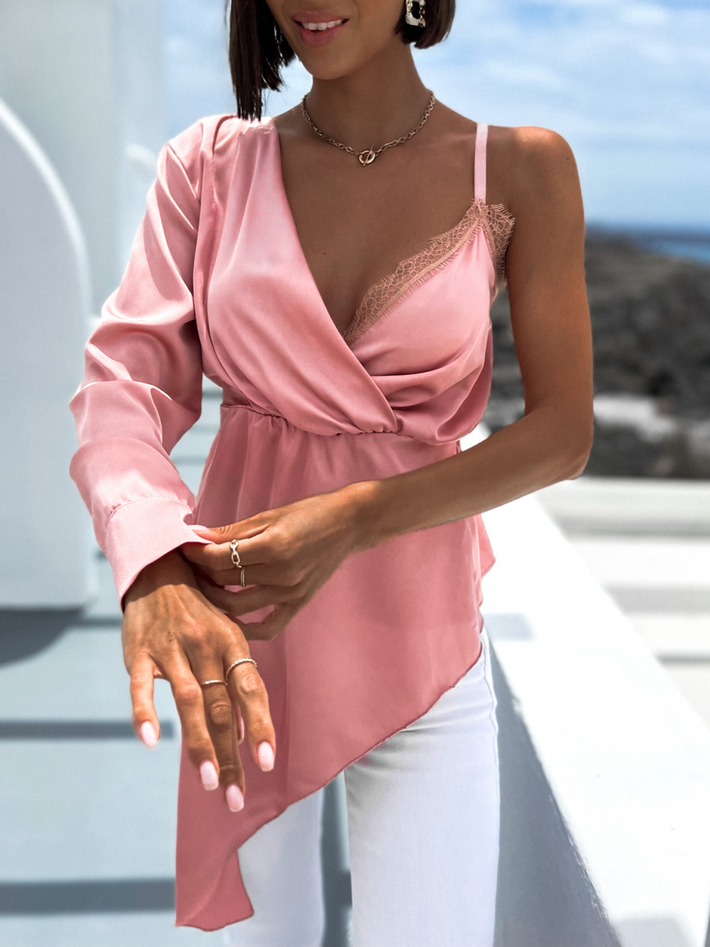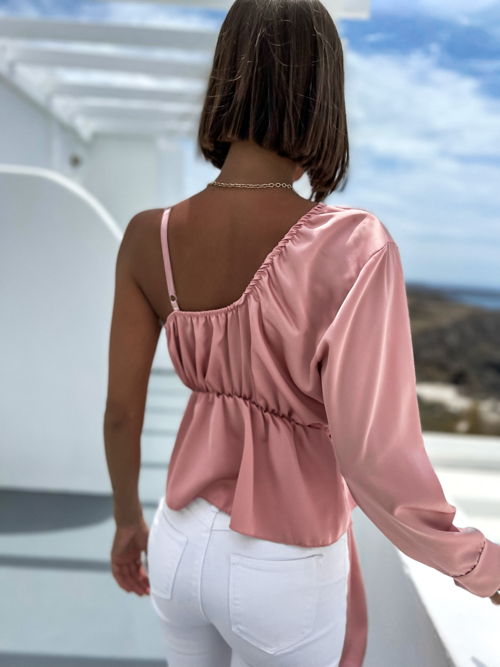 Starorůžová lesklá halenka MADLYE s jedním dlouhým rukávem
