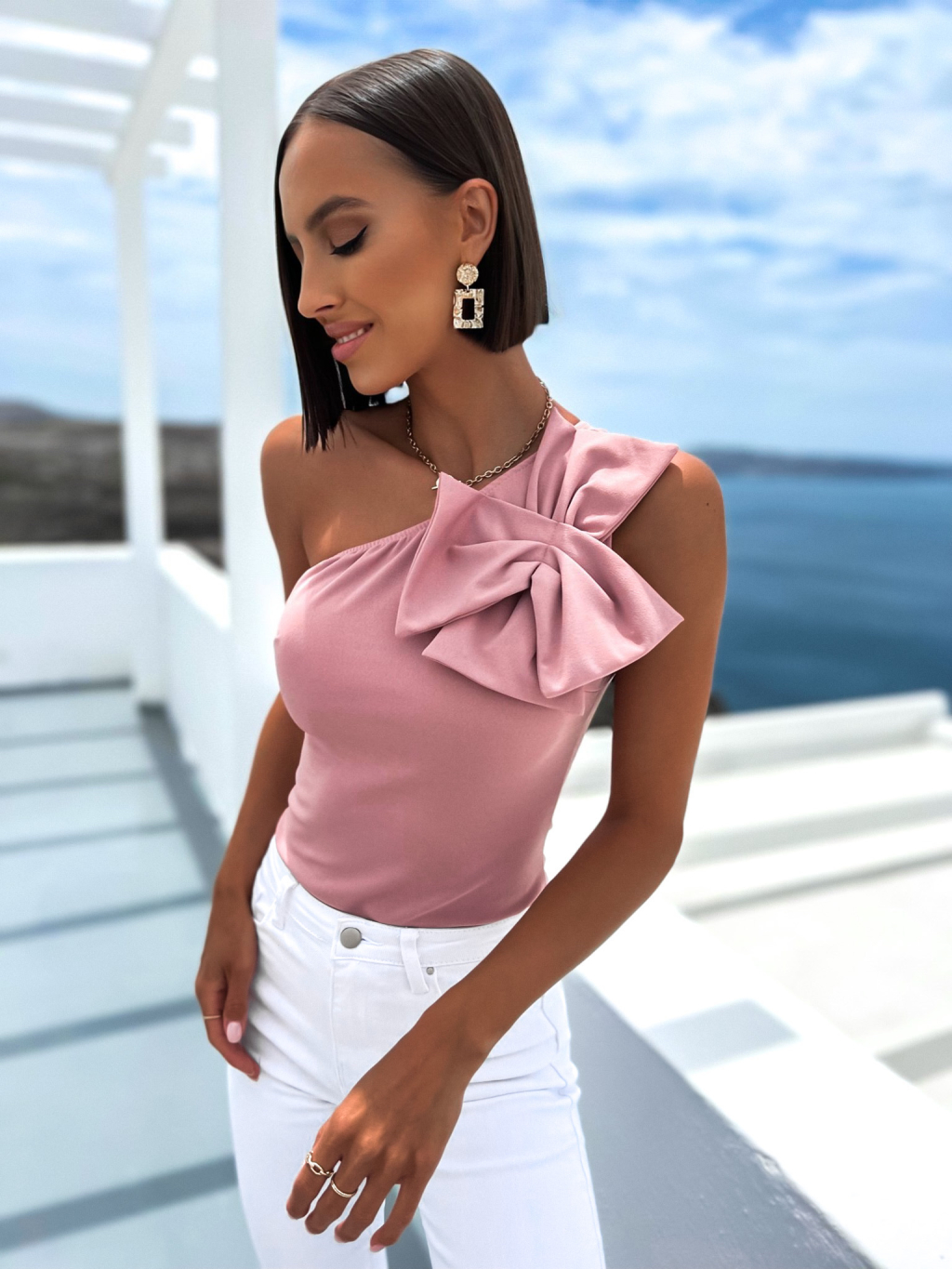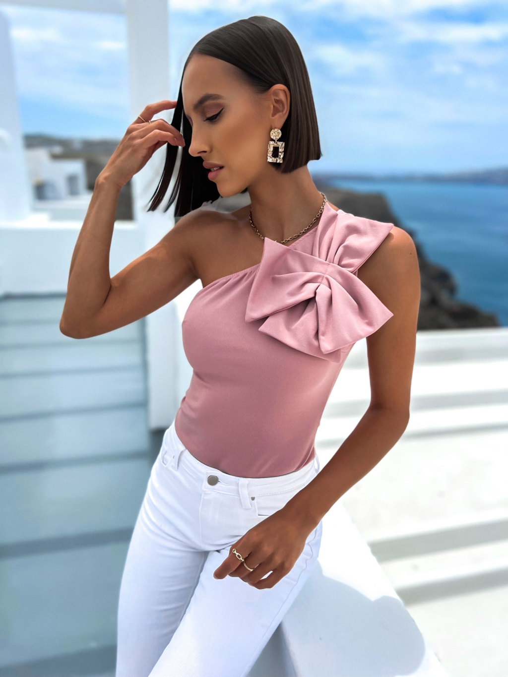 Starorůžové elegantní body LUXURIOUS s mašlí