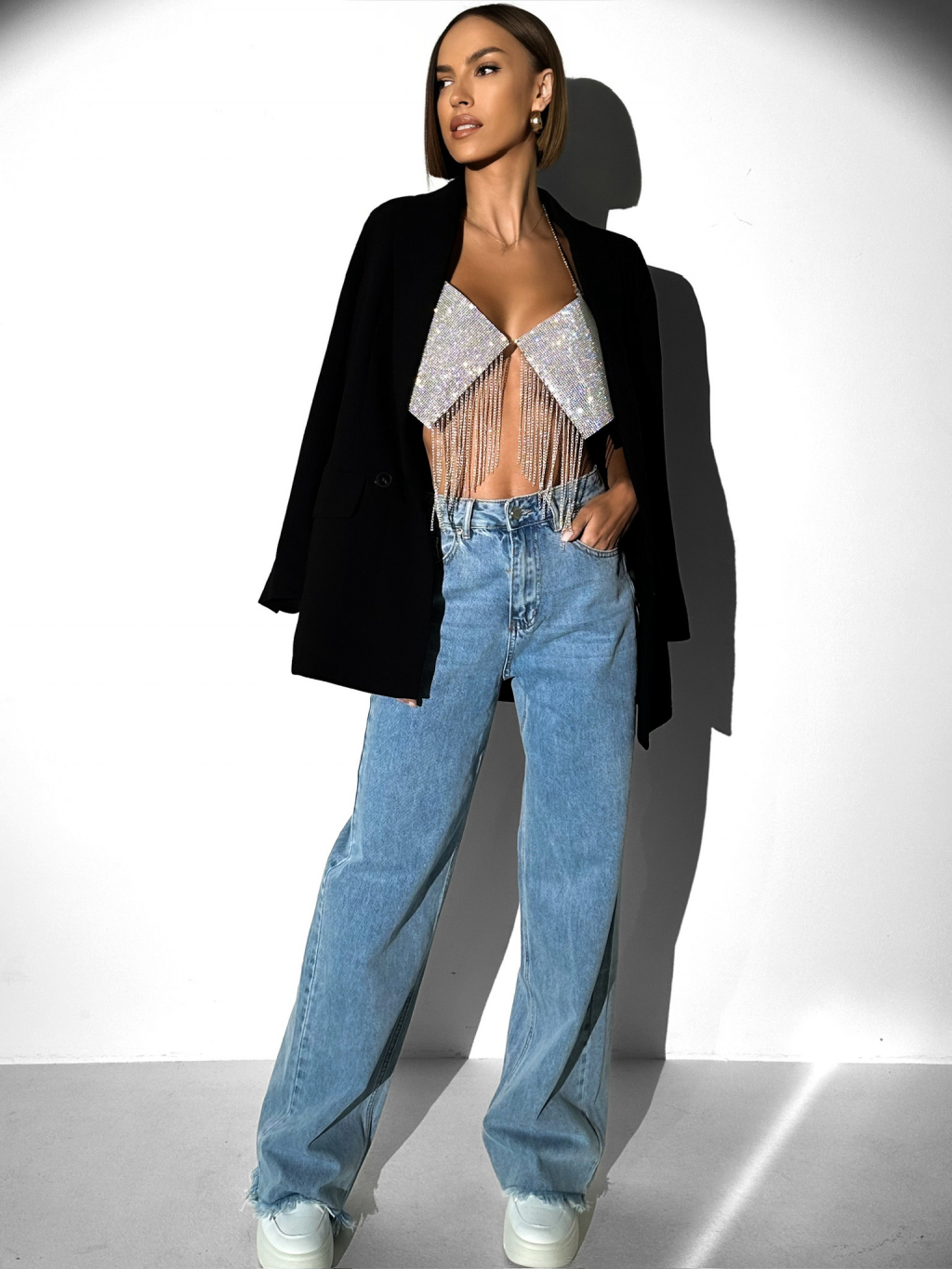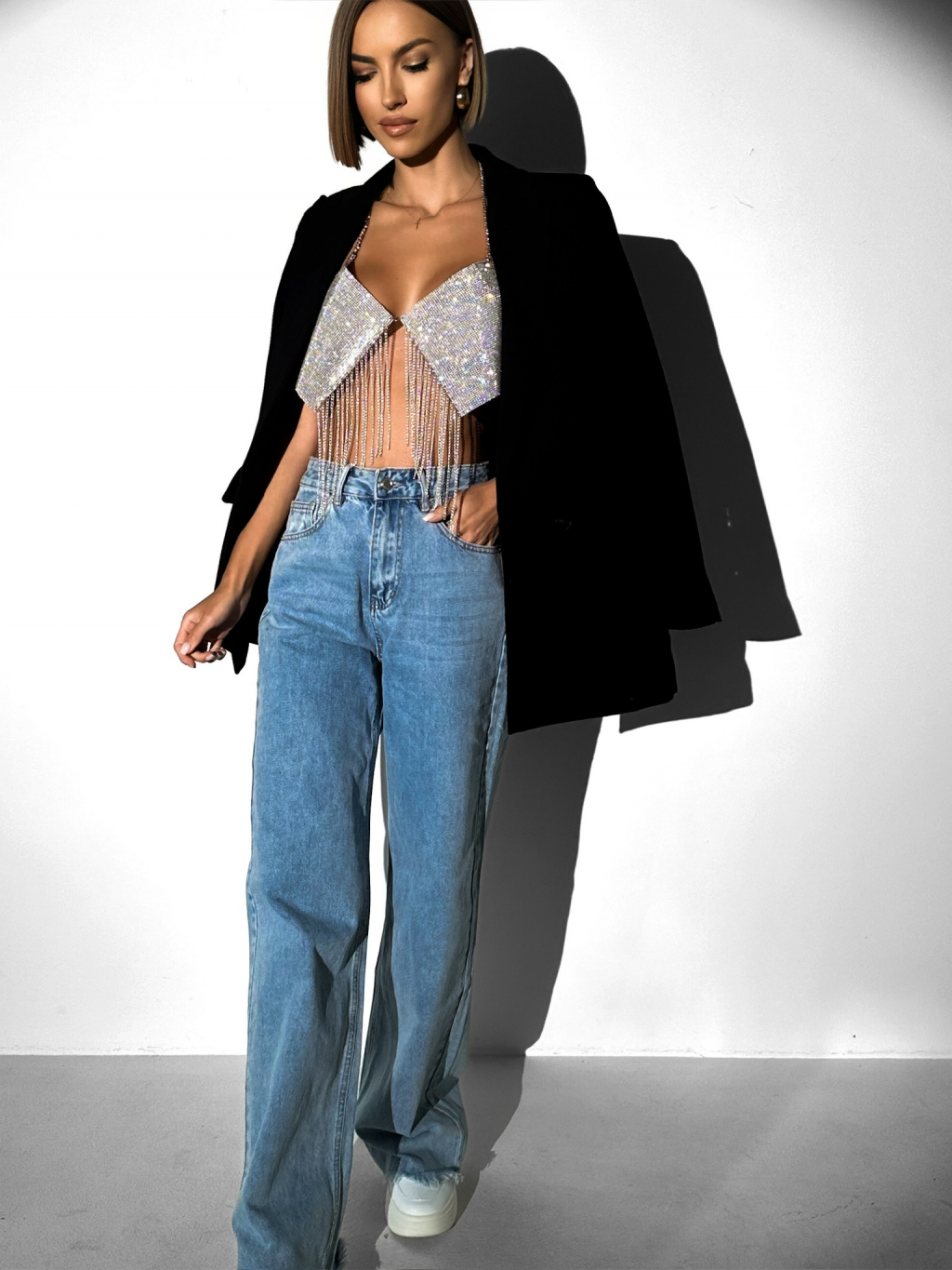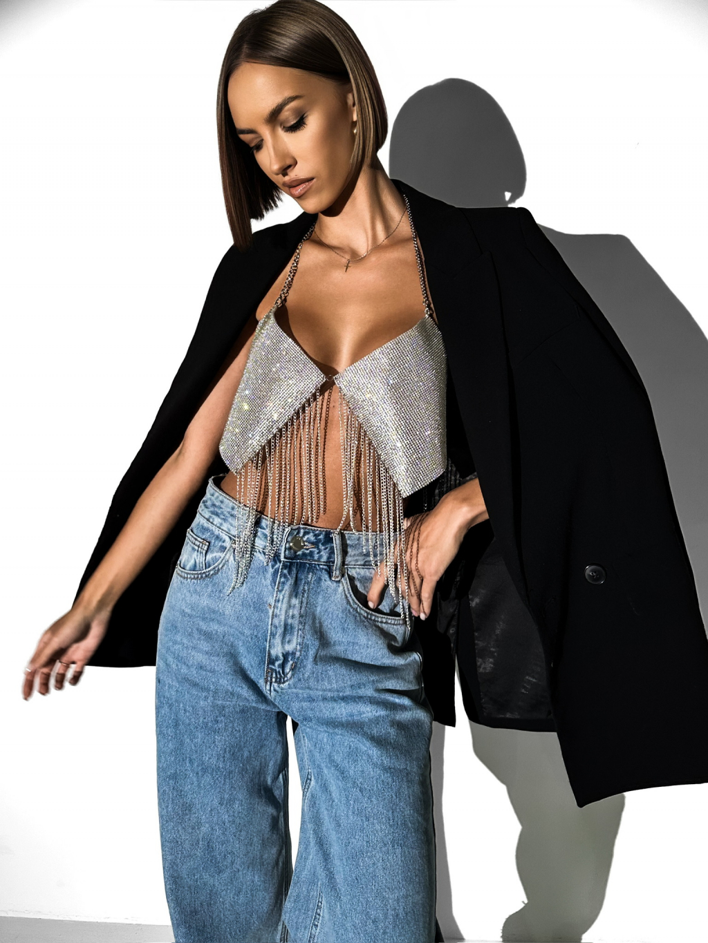 Stříbrný třpytivý flitrový top SELMAR s kamínky