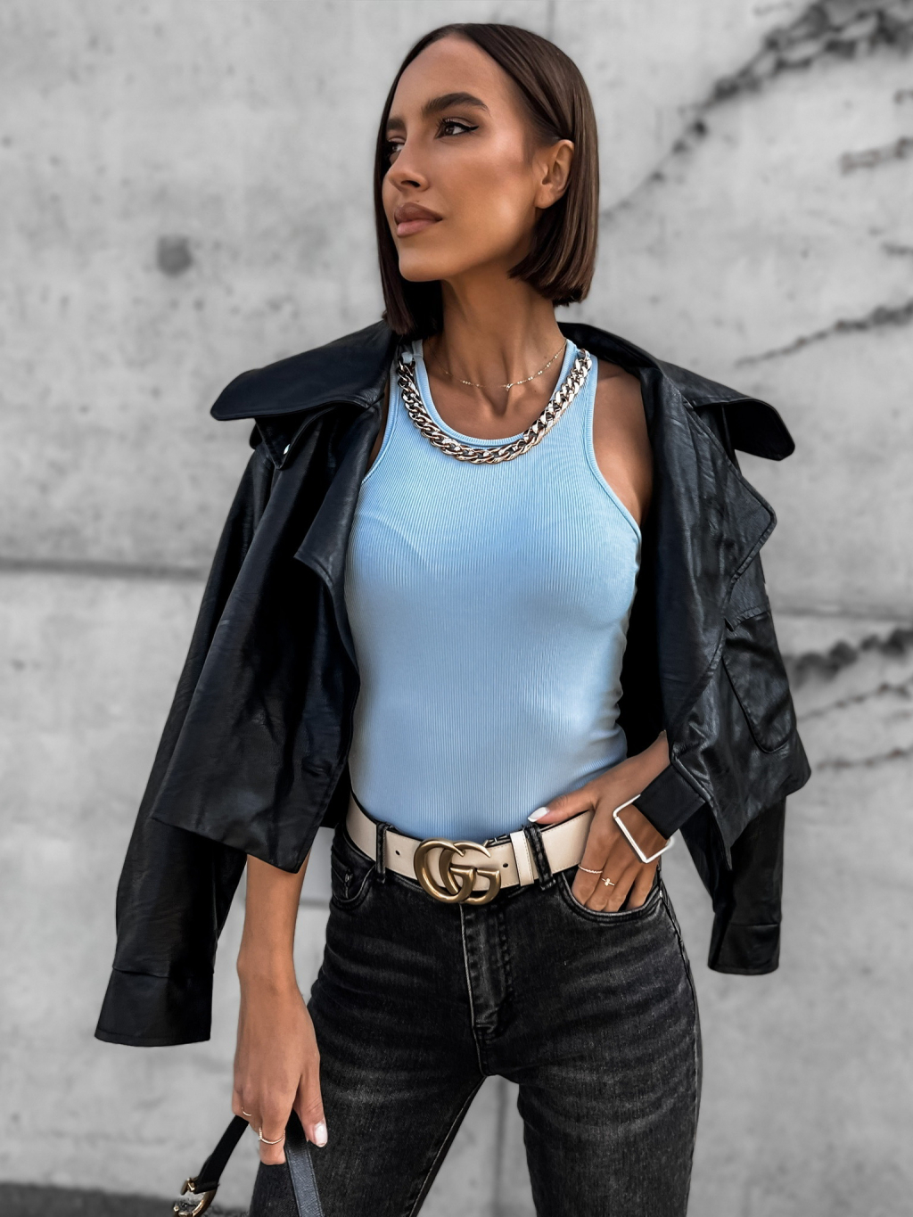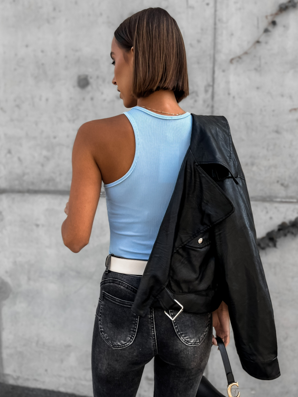 Světle modré elegantní body MERLE se zlatým detailem