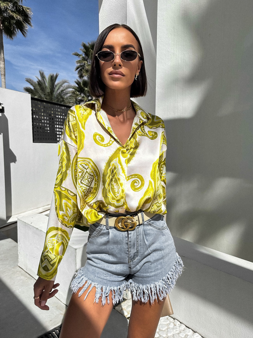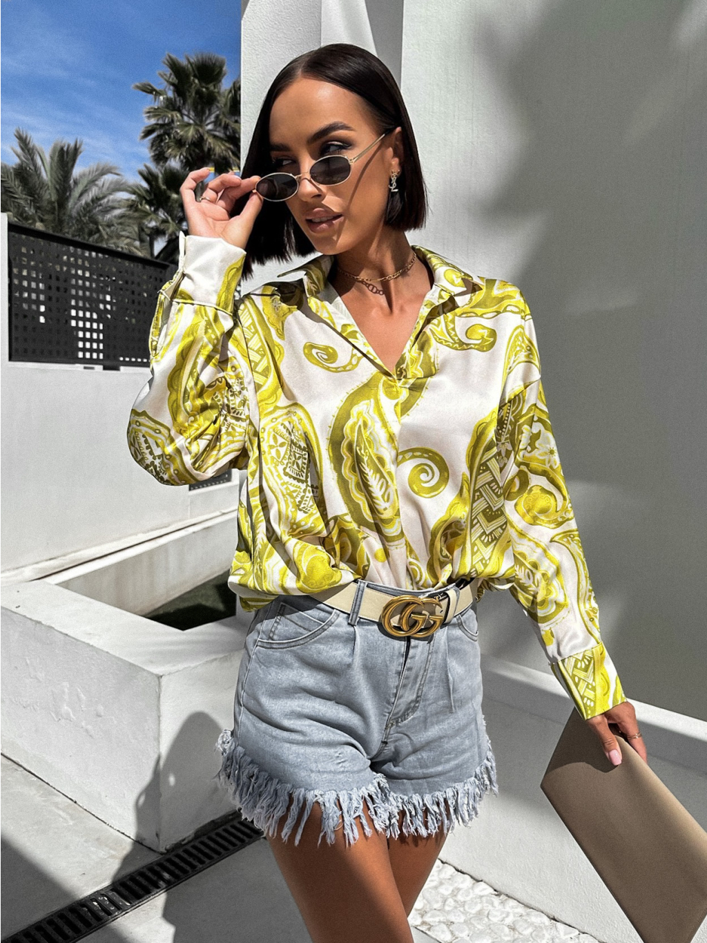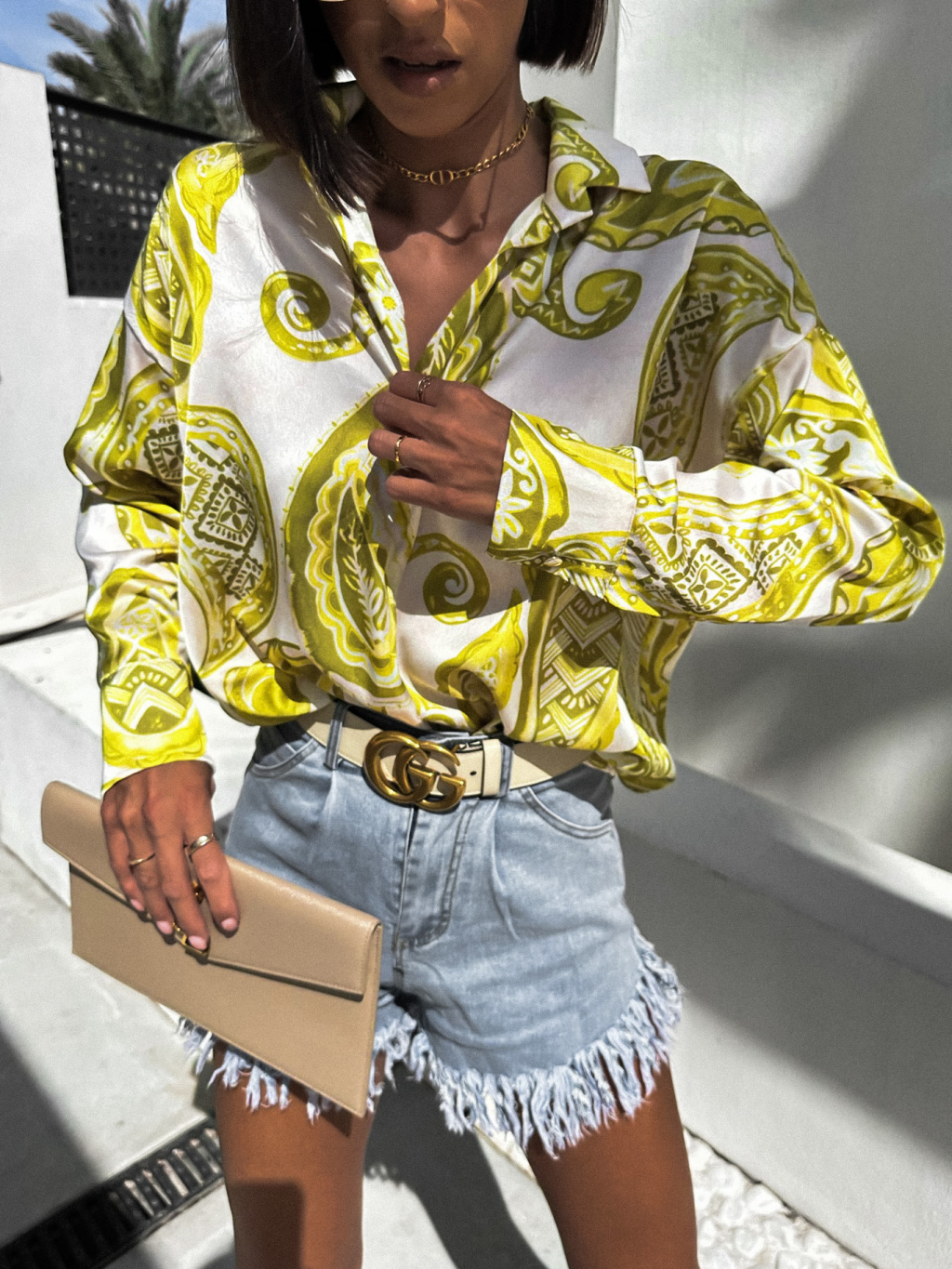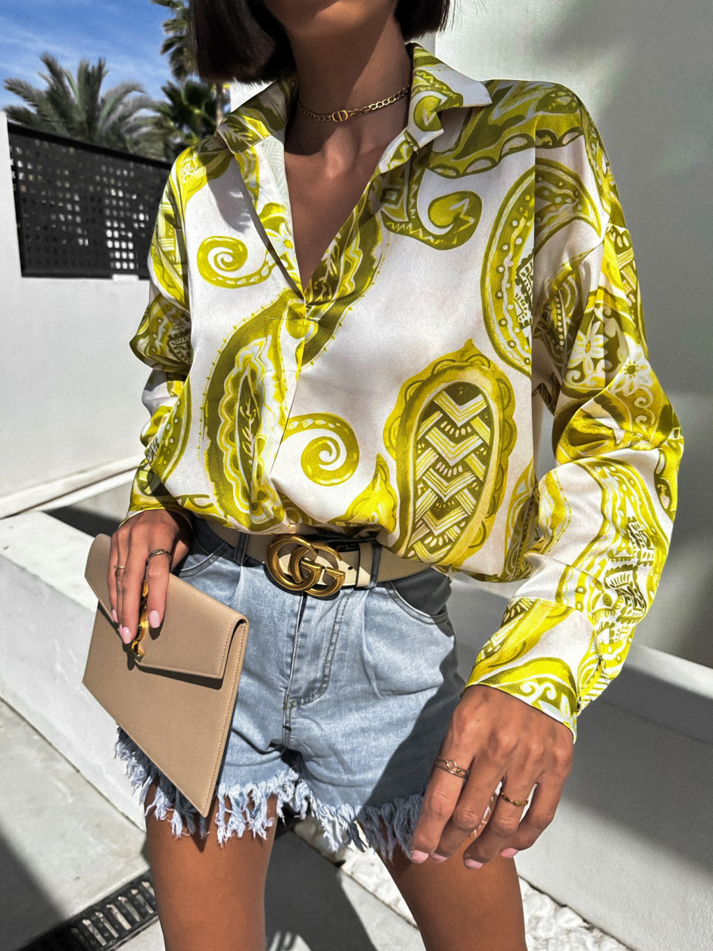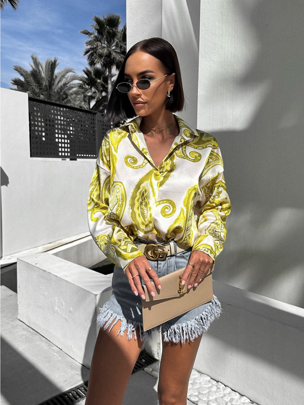 Světle zelená lesklá elegantní košile PEGGIE se vzory