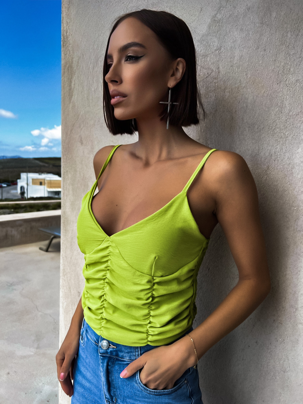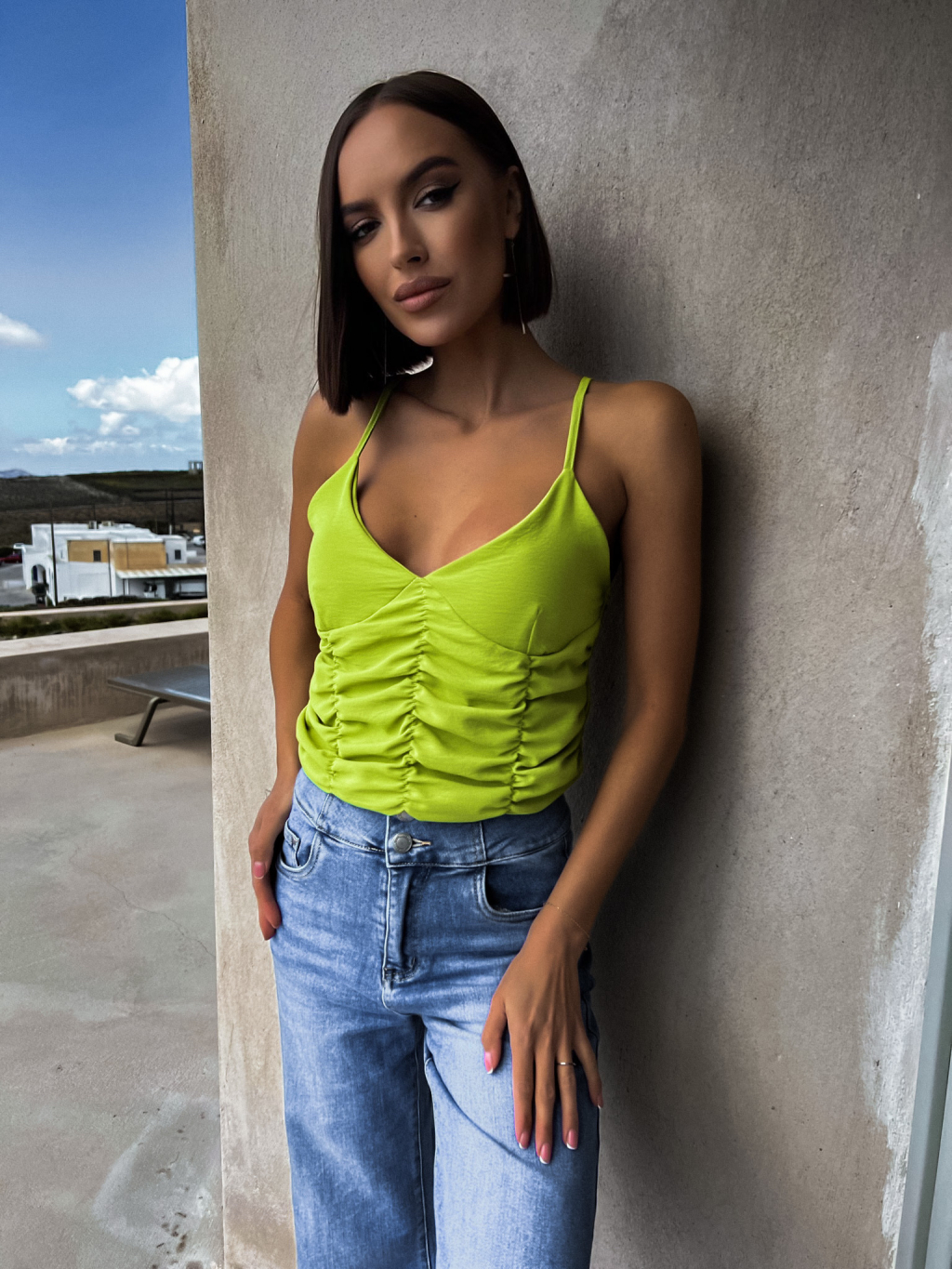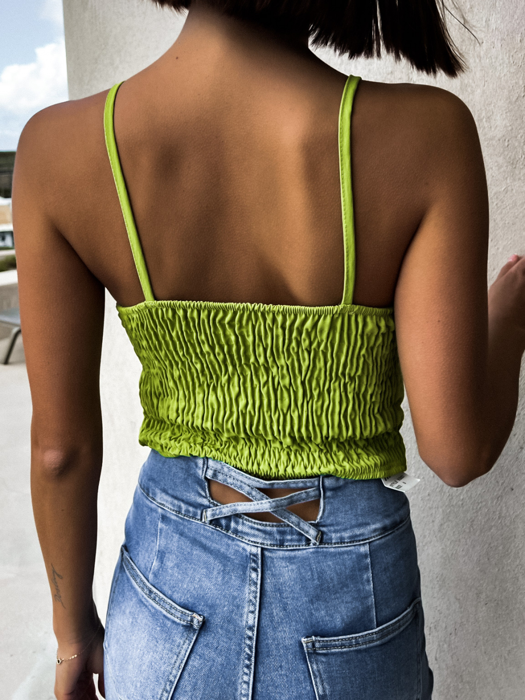 Světle zelený nařasený tílkový top FROLIN
