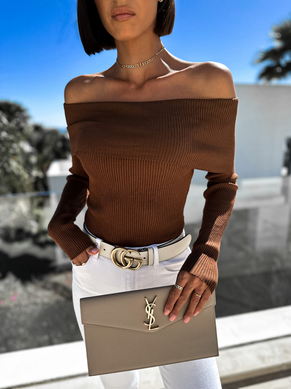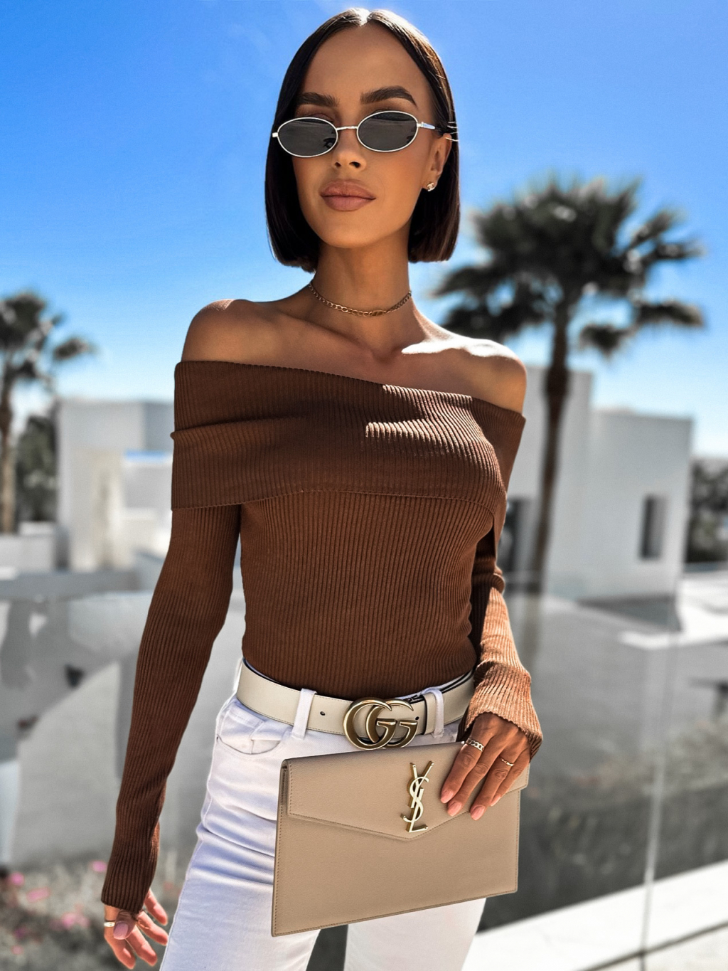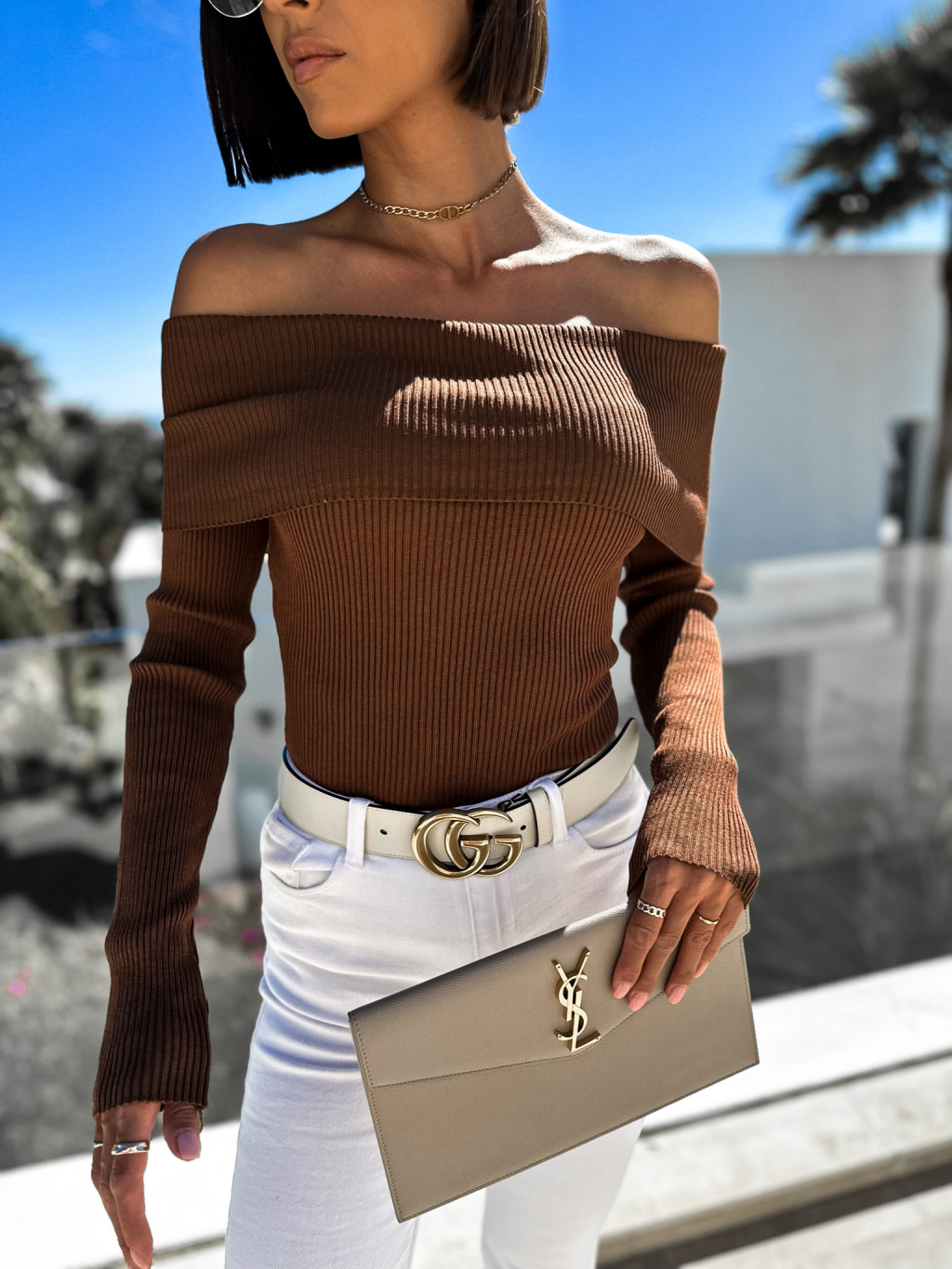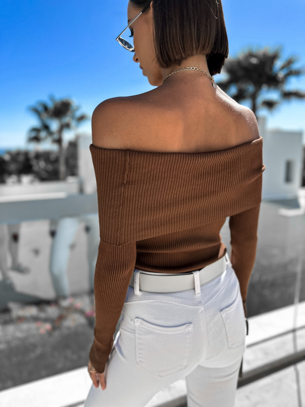 Tmavě hnědé žebrované body MONDENE s dlouhým rukávem