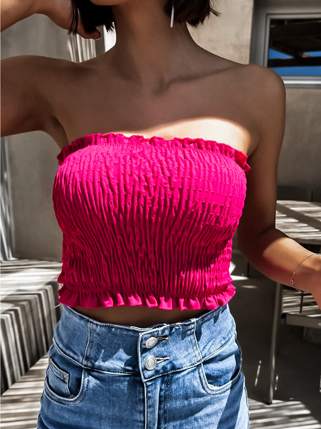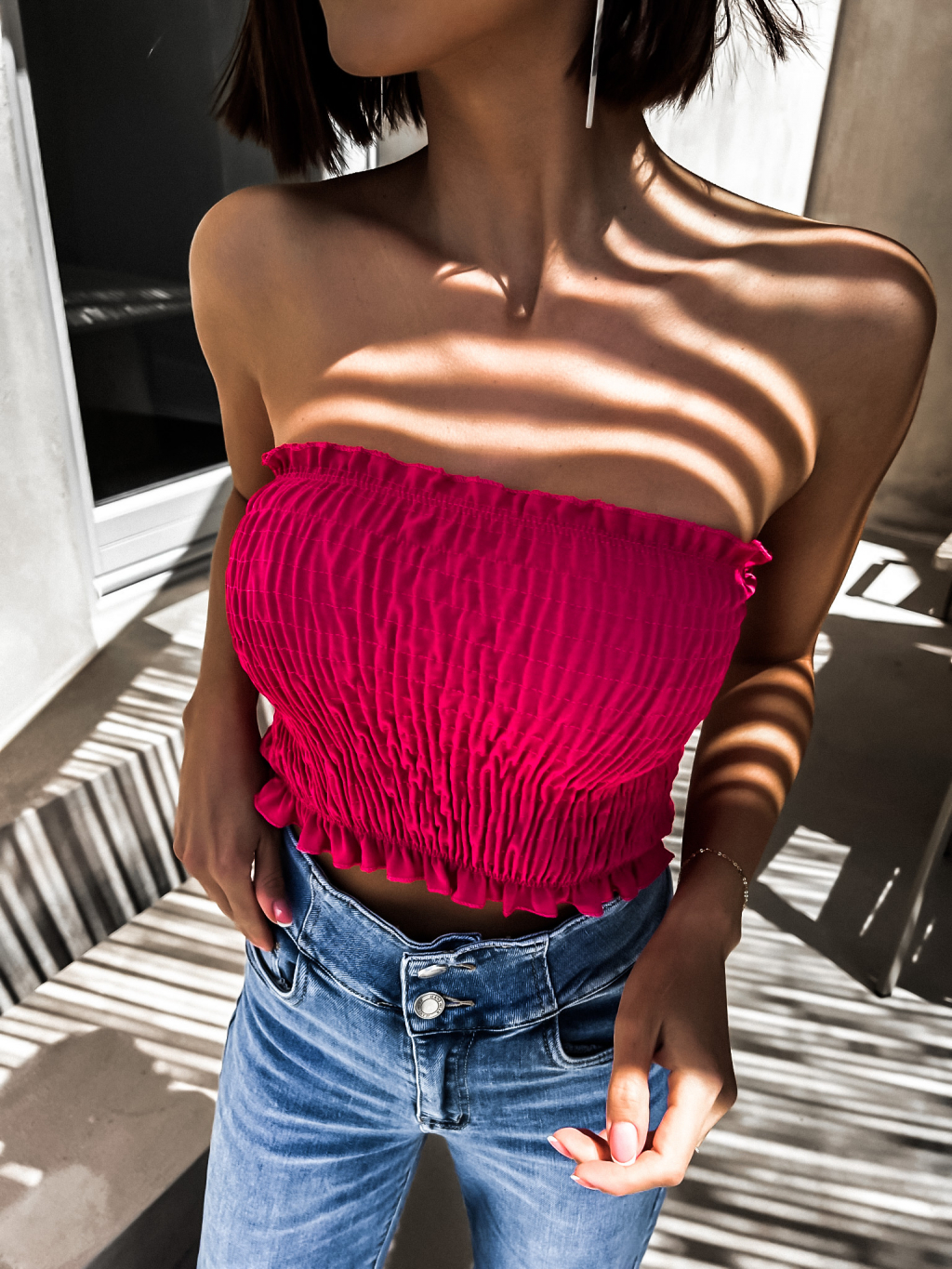 Tmavě růžový elegantní crop top KEET
