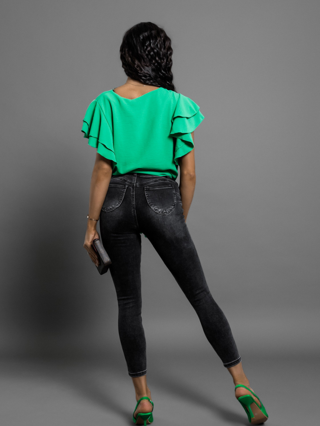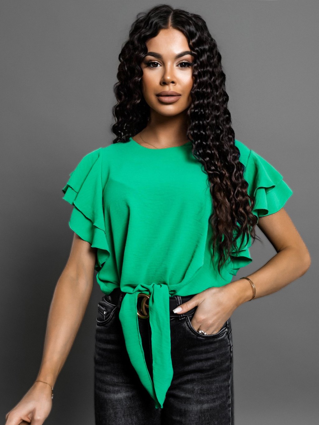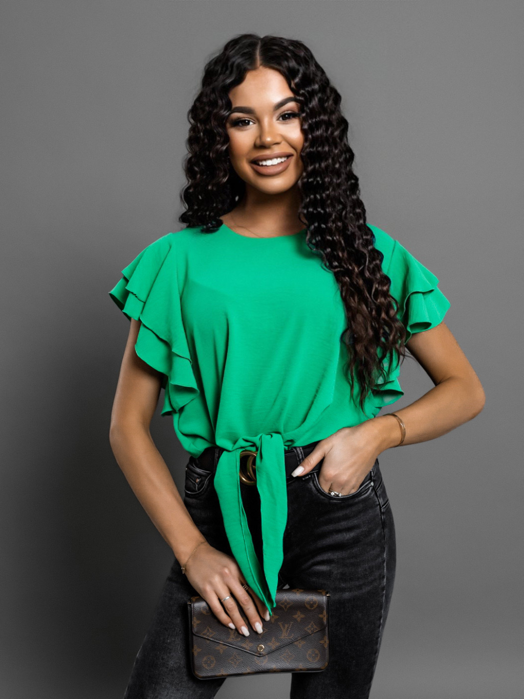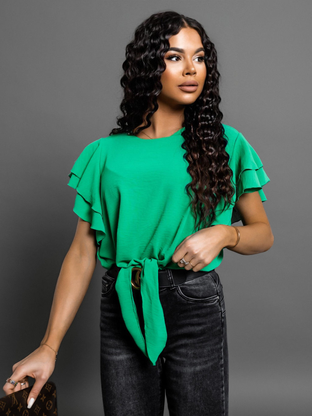 Tmavě zelená halenka BECKETT s volánky a zavazováním