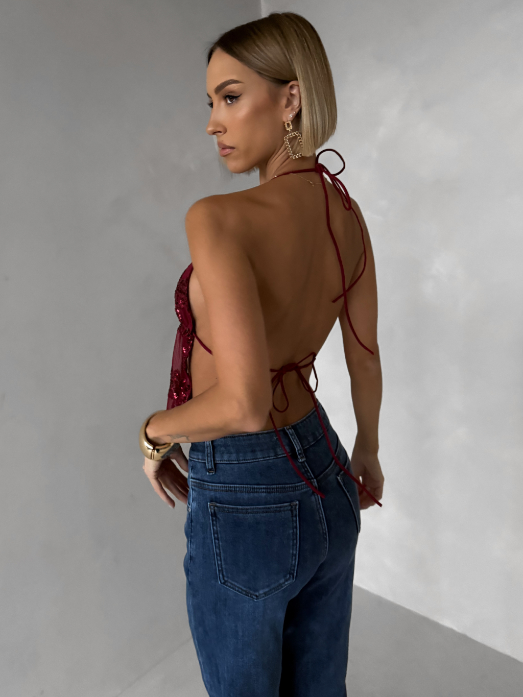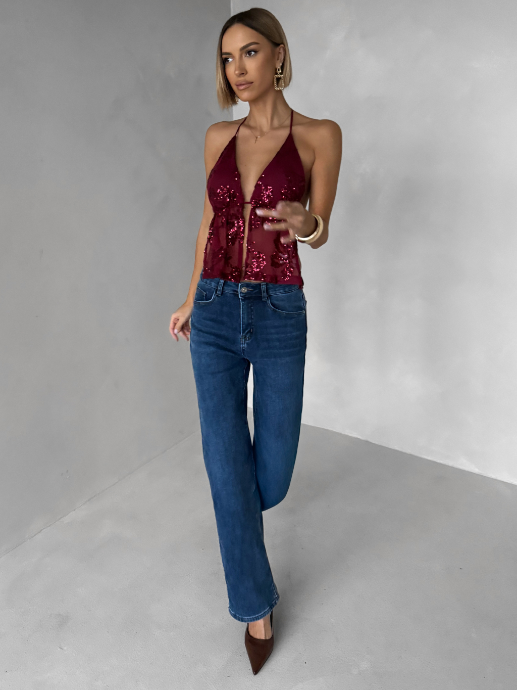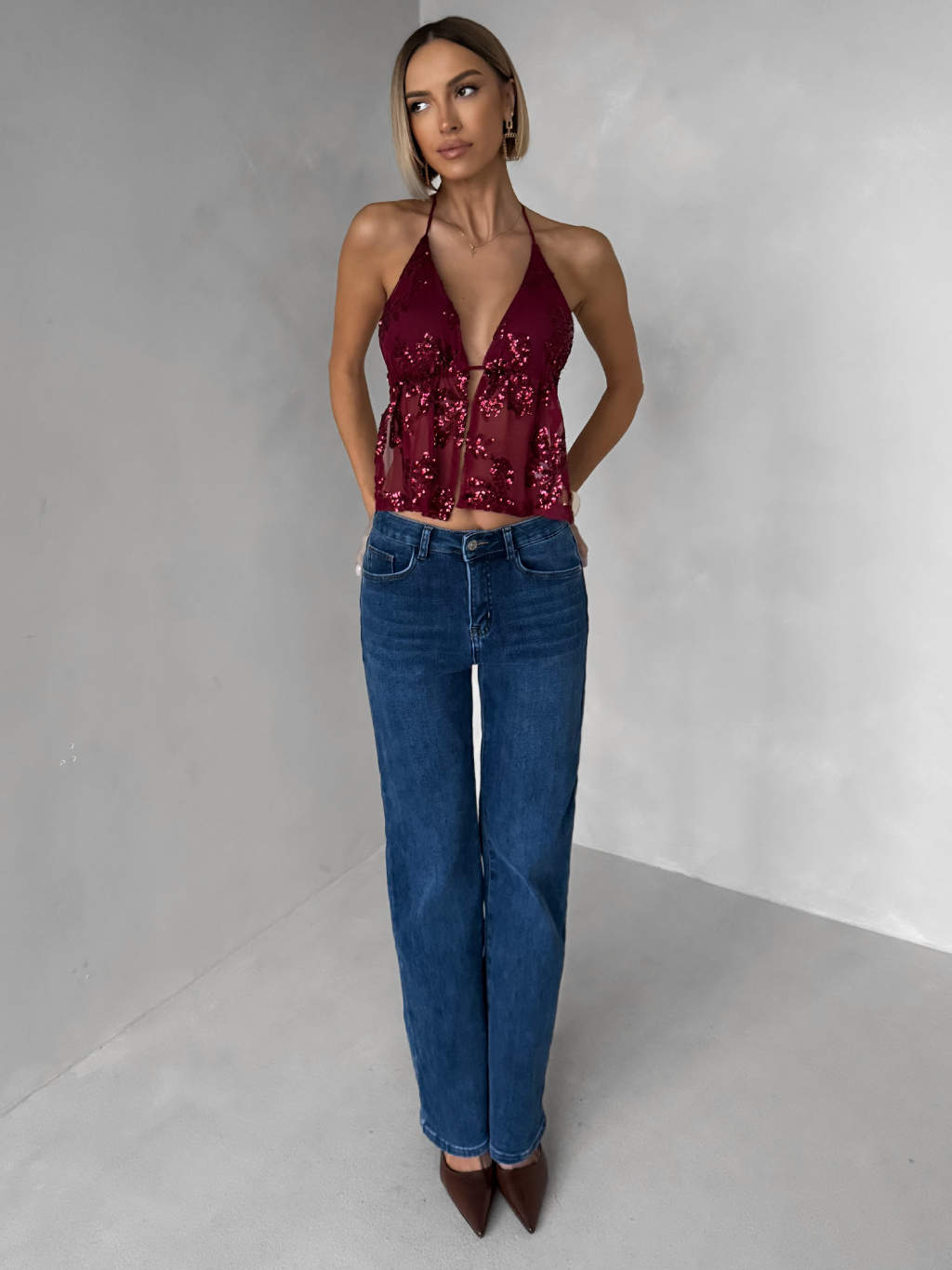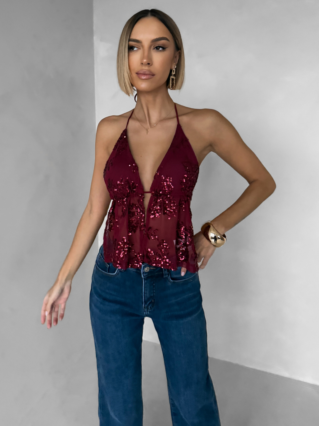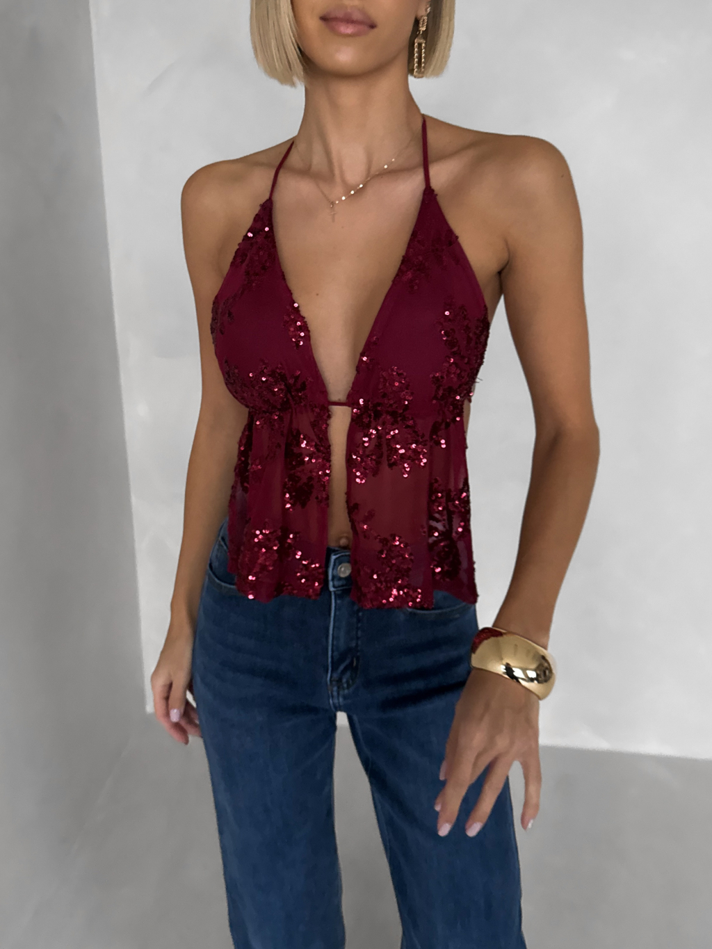 Vínový třpytivý top SCARLET s flitry