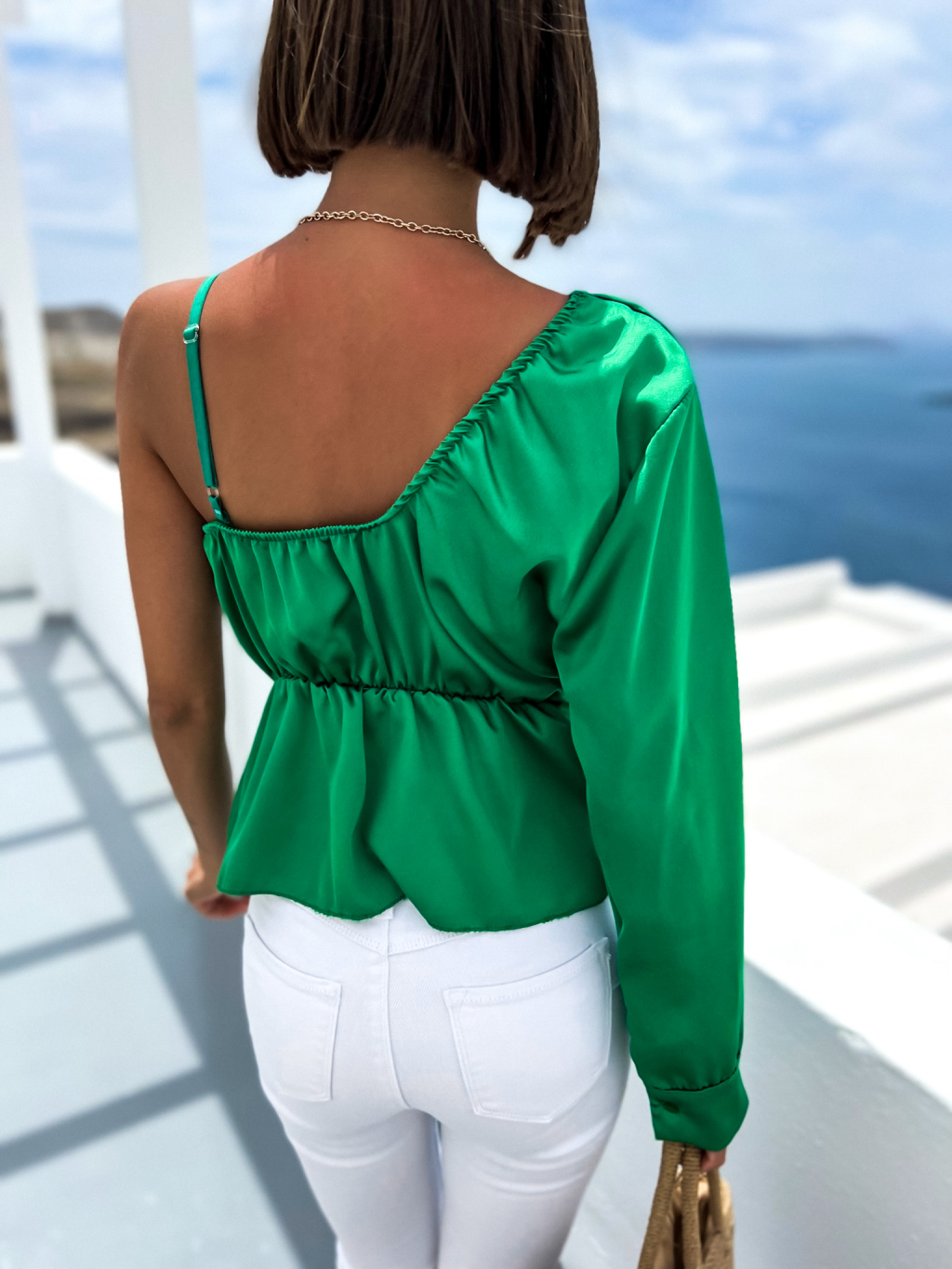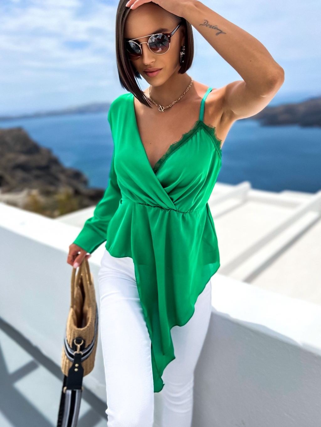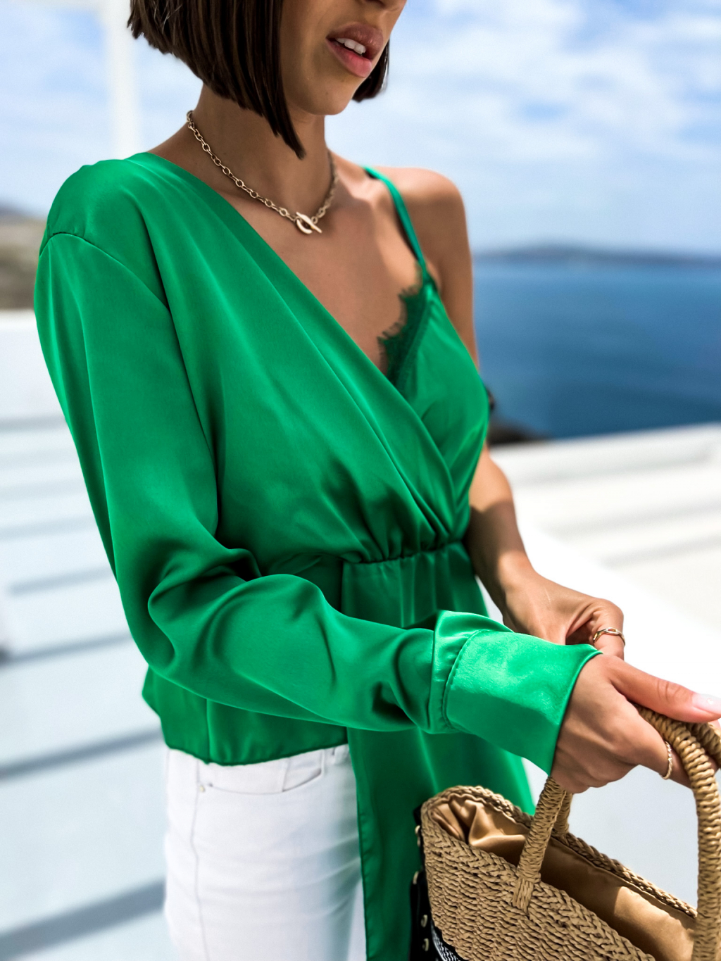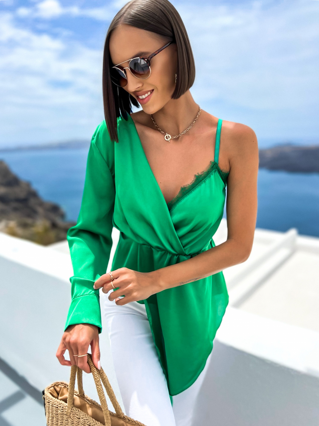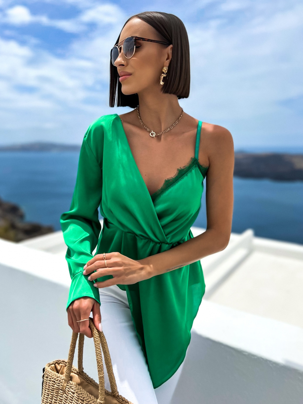Zelená lesklá halenka MADLYE s jedním dlouhým rukávem