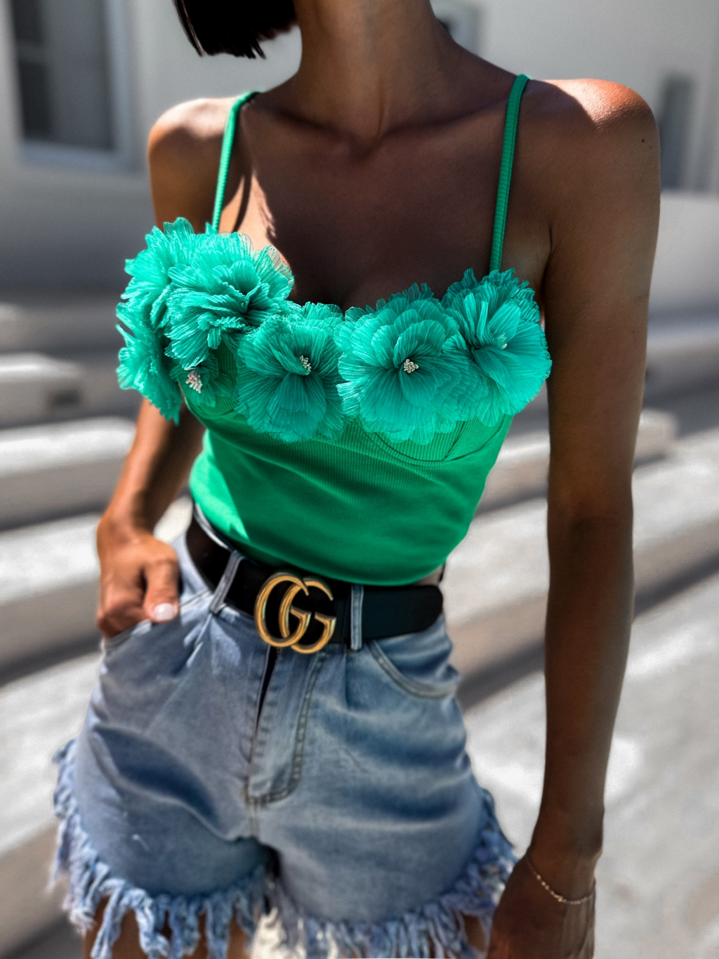 Zelený crop top MONINENY