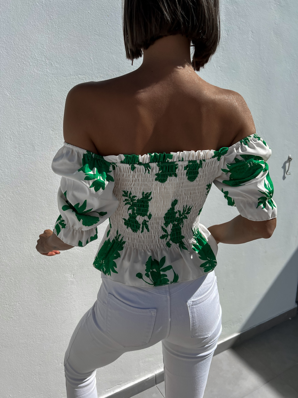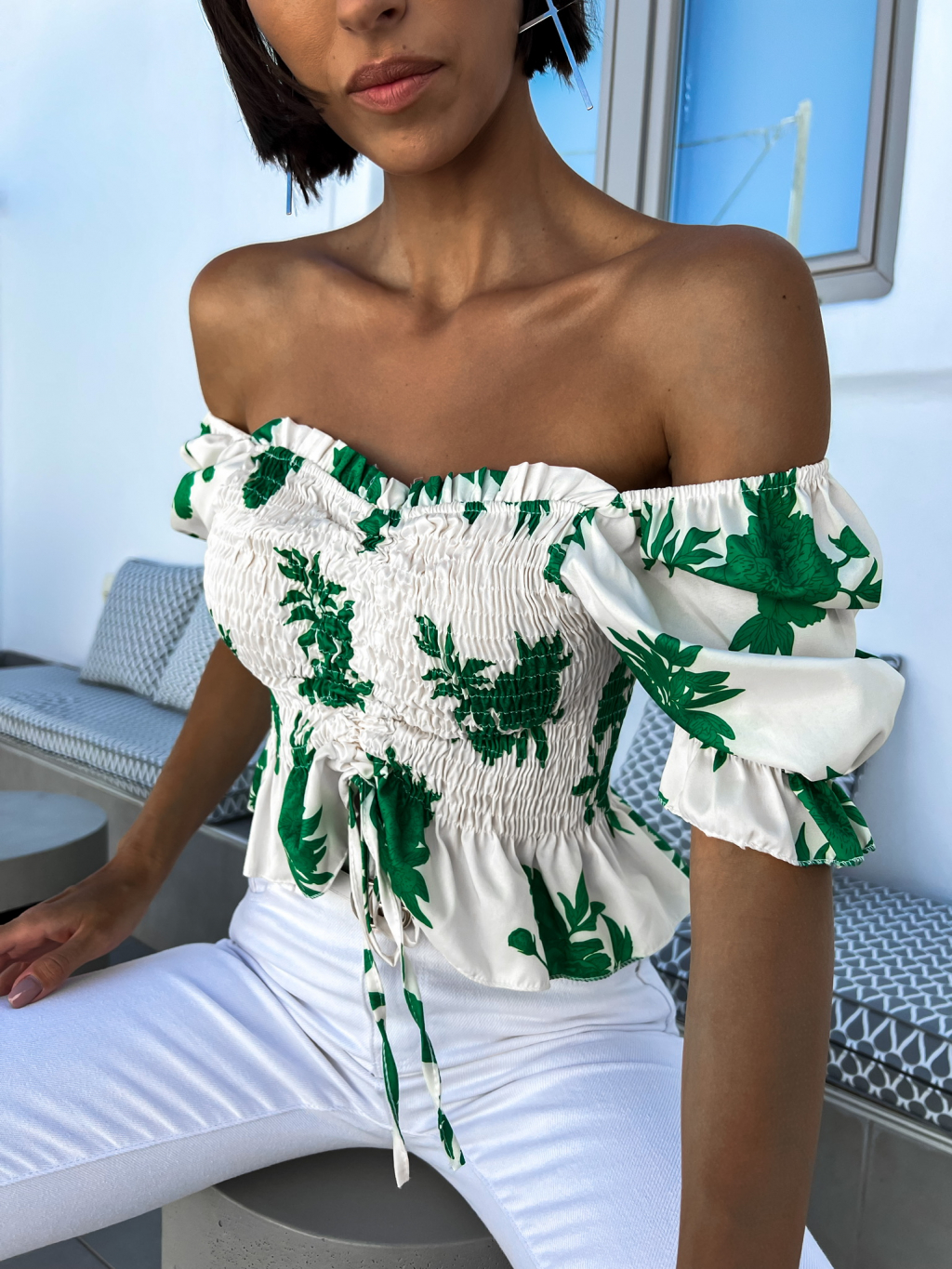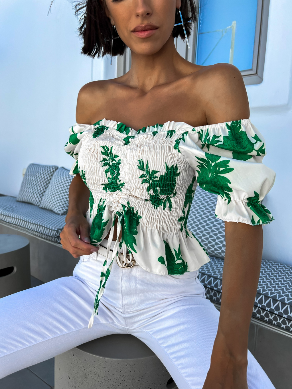 Zelený elegantní crop top AMARA s květinovým vzorem