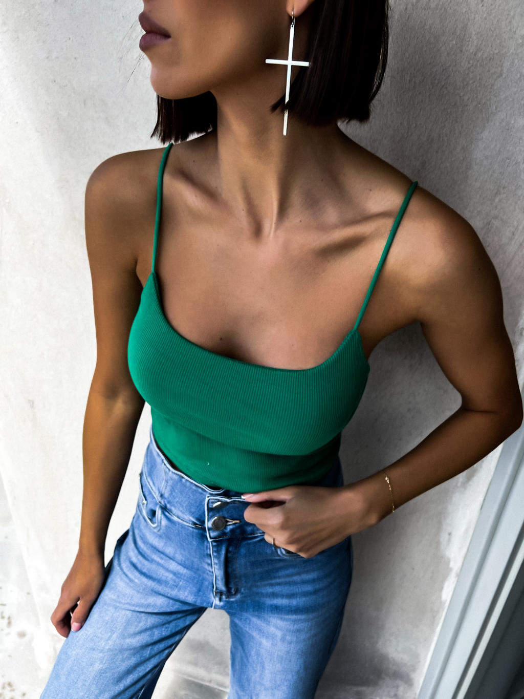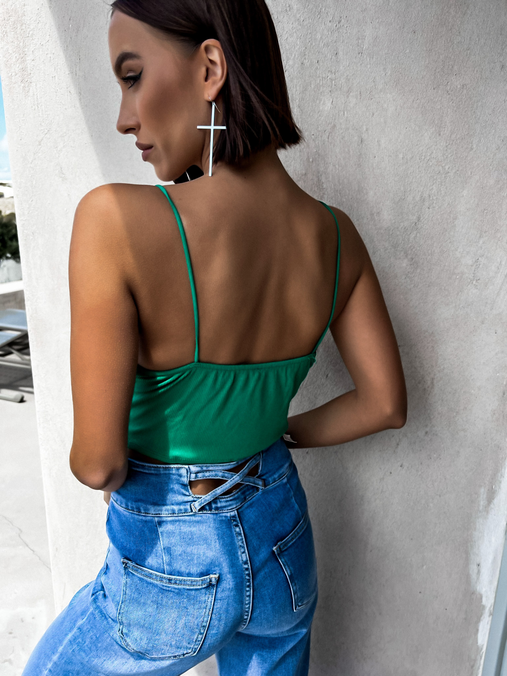 Zelený Jednoduchý žebrovaný crop top ARLOS