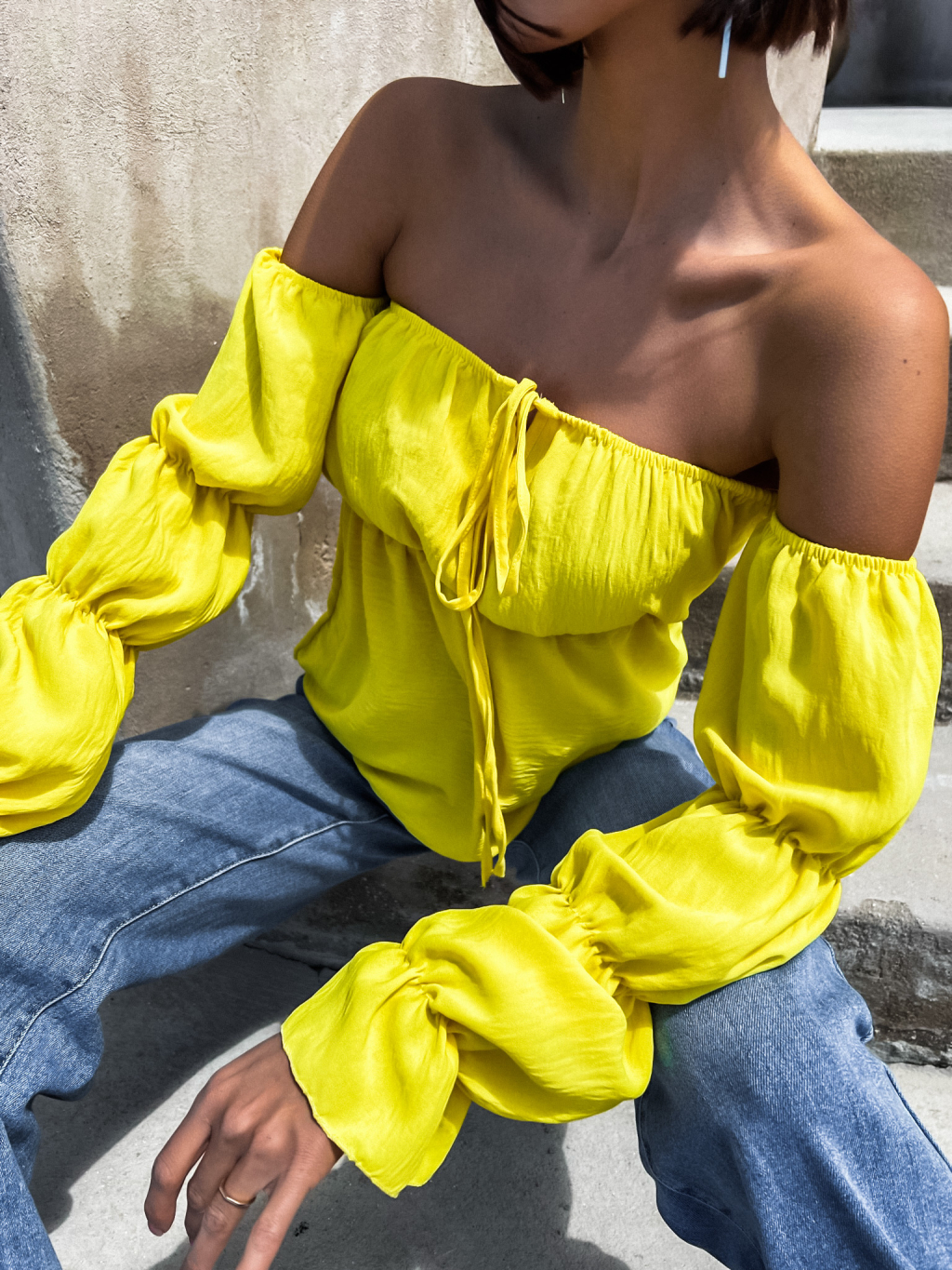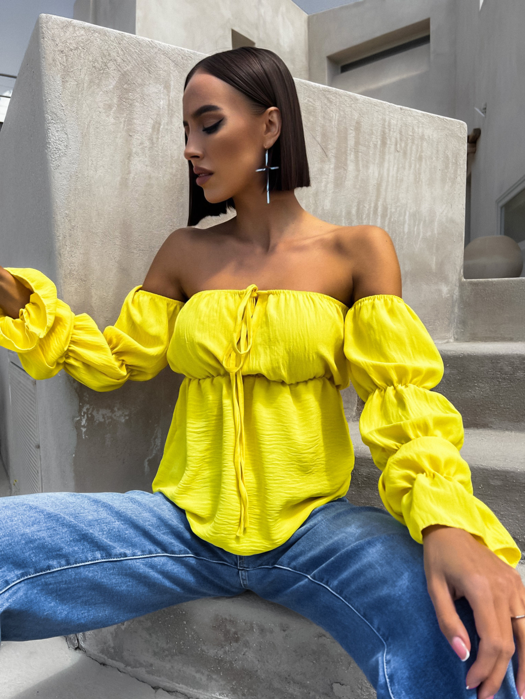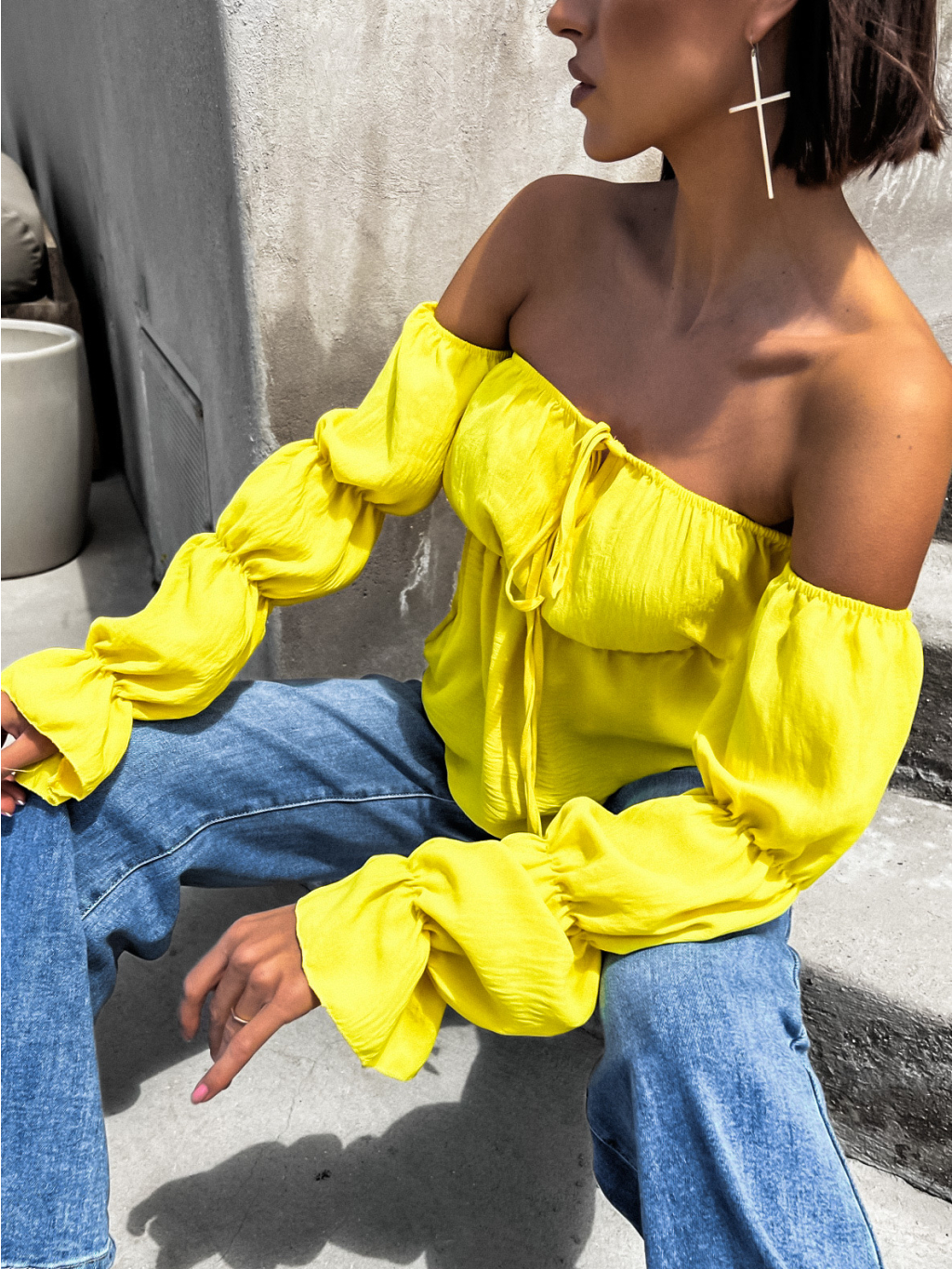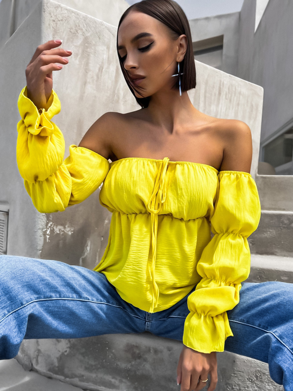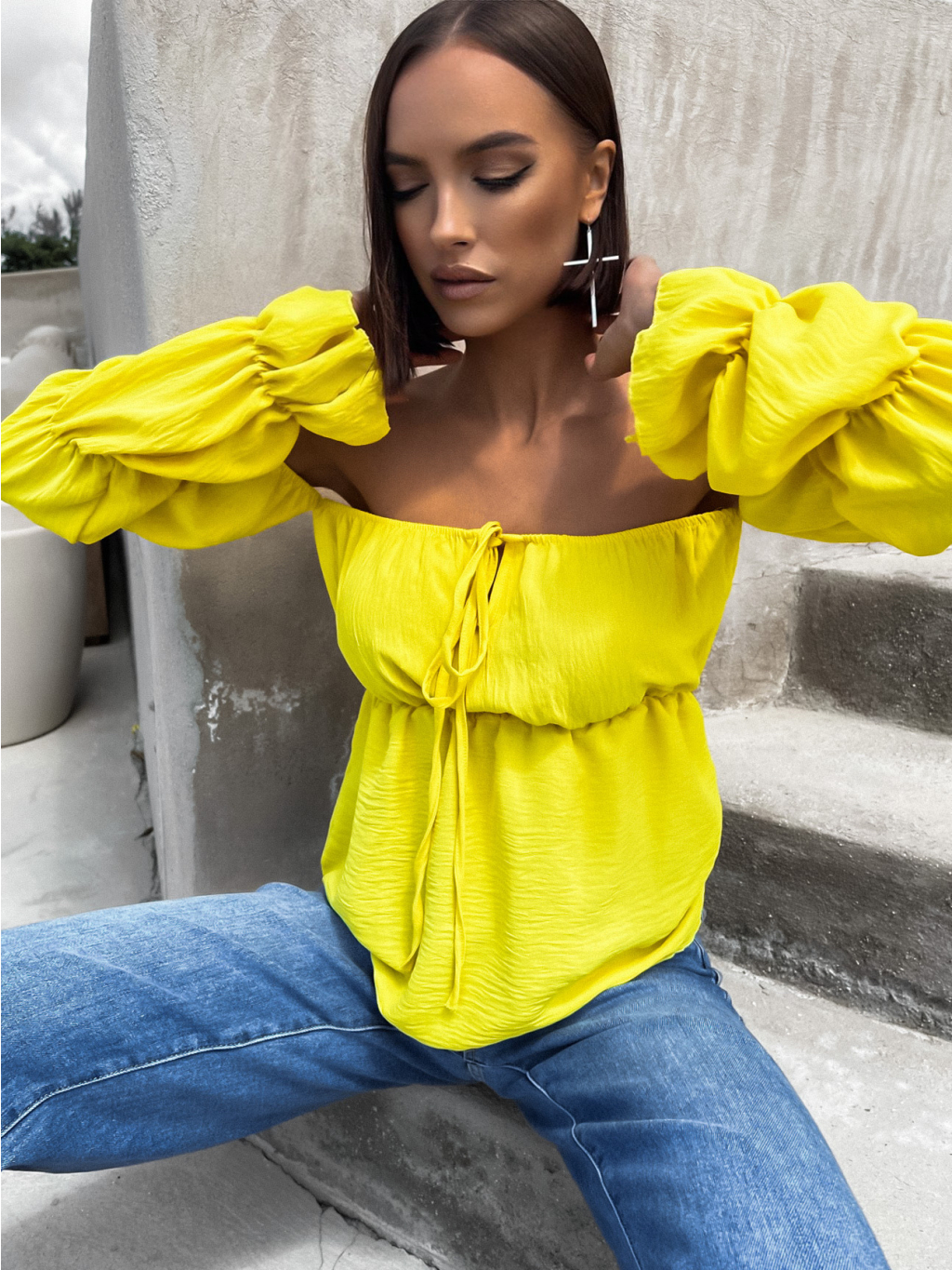 Žlutá halenka KITEN s řasenými rukávy