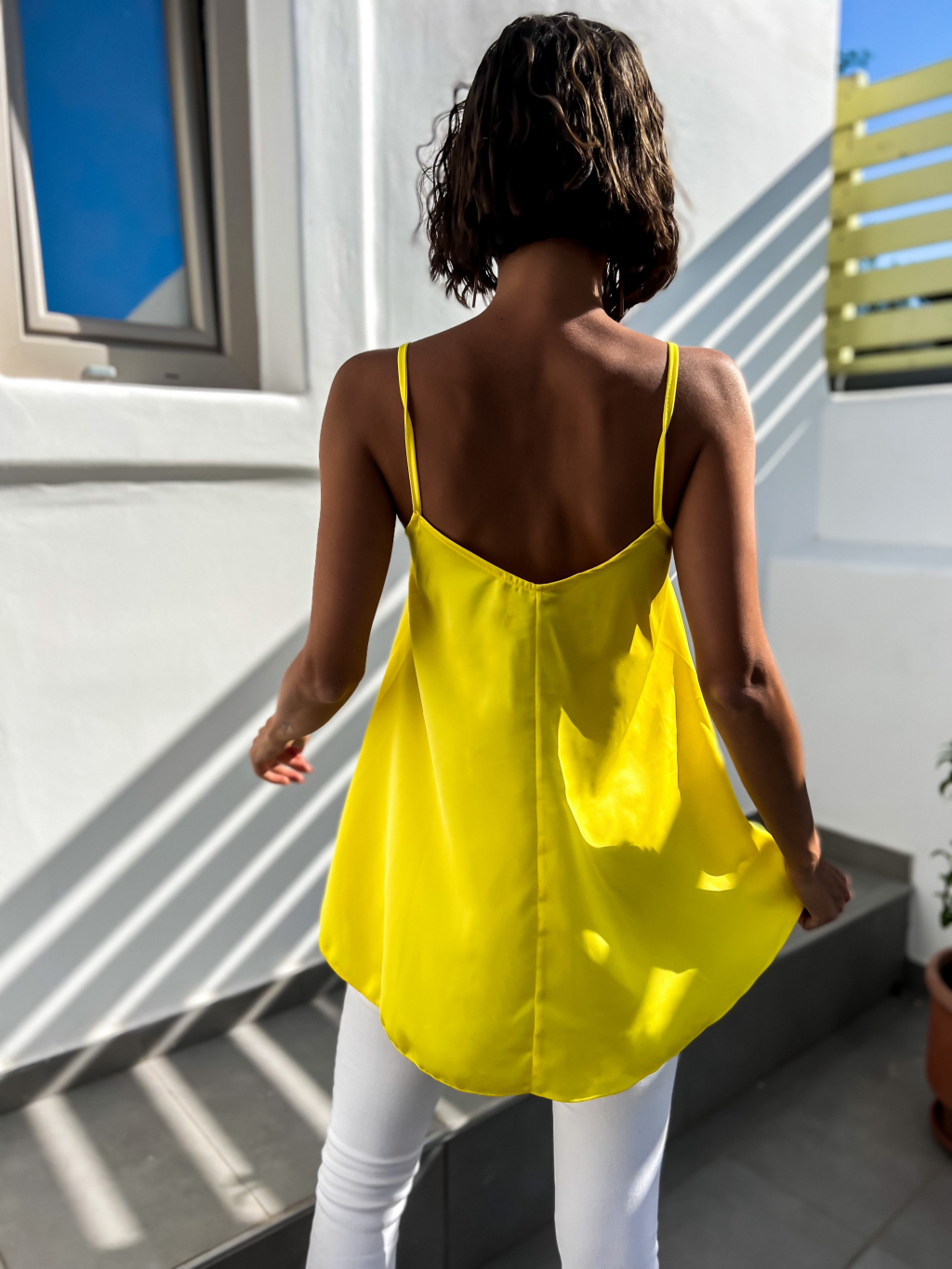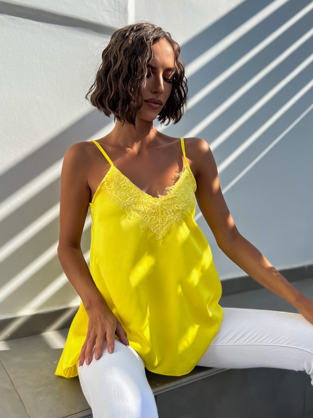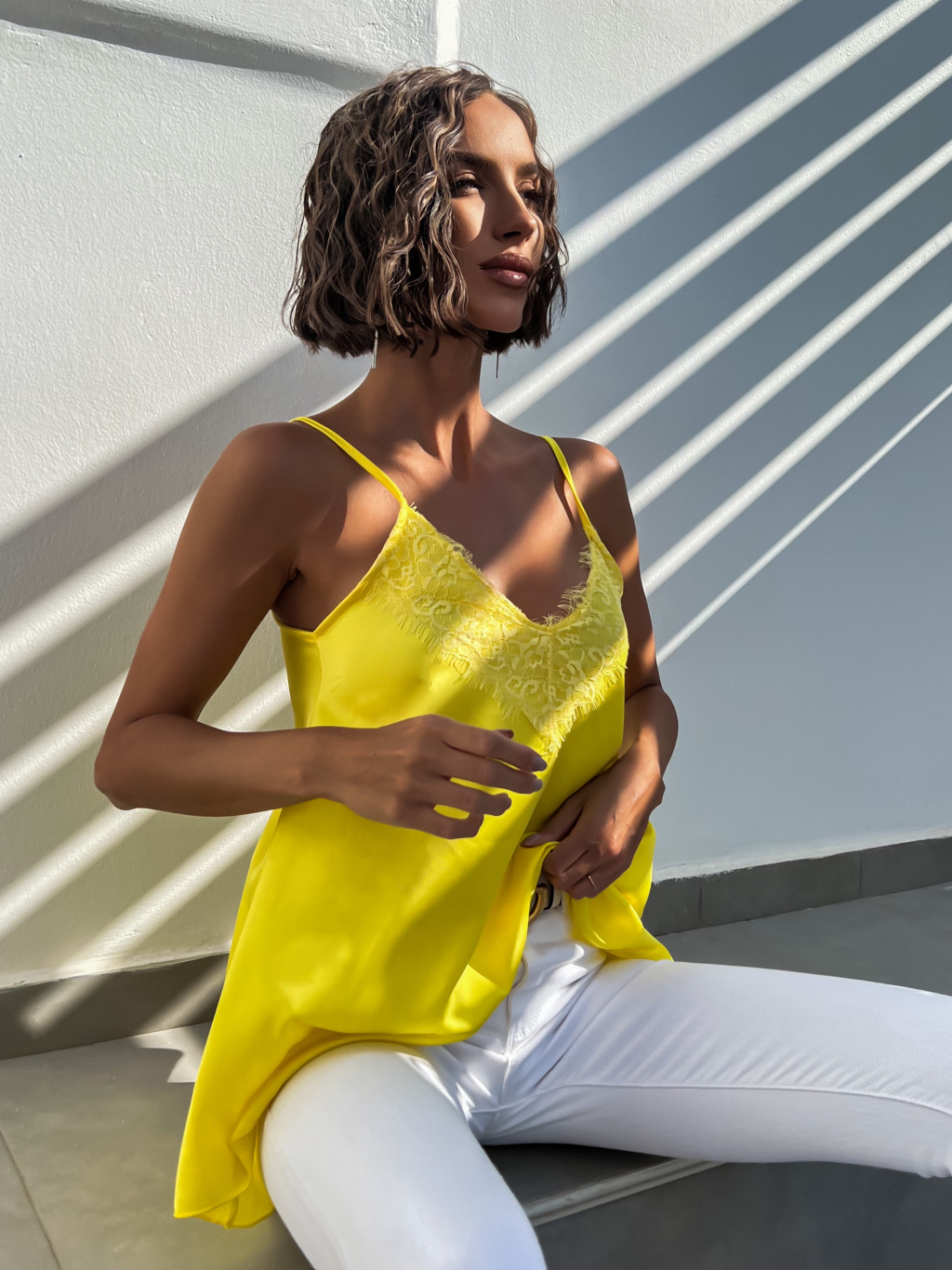 Žlutý elegantní top FANIAS s krajkou