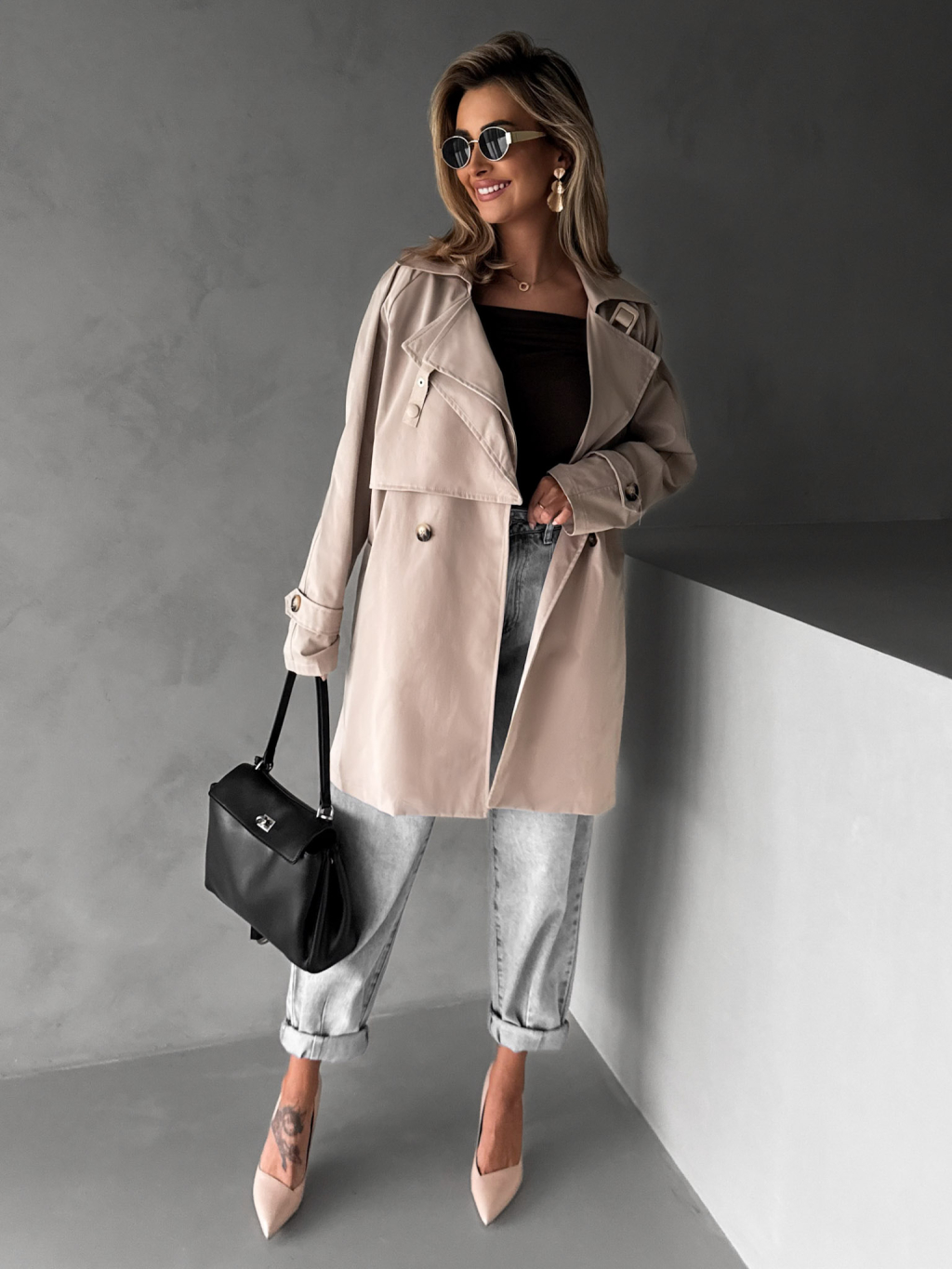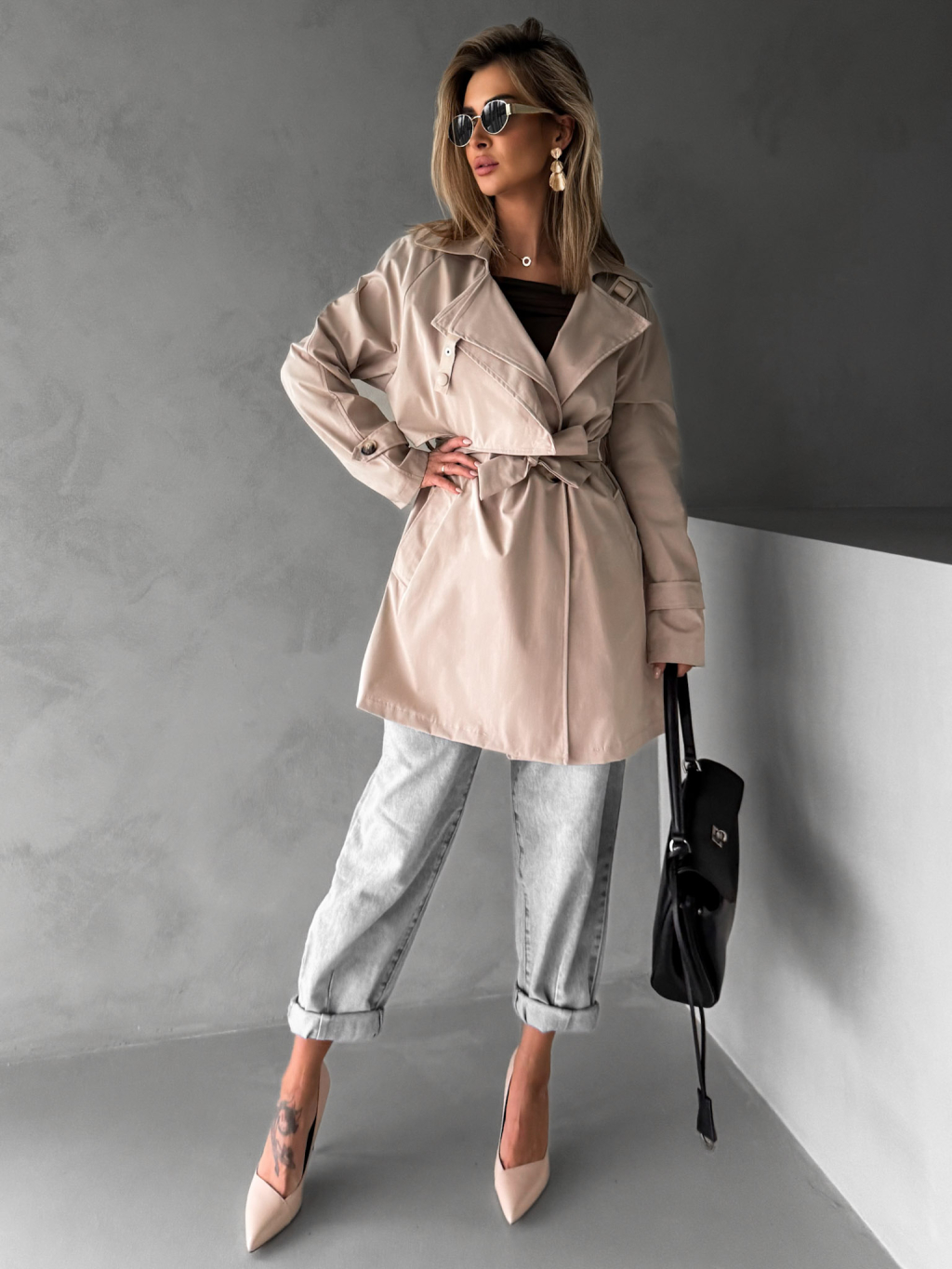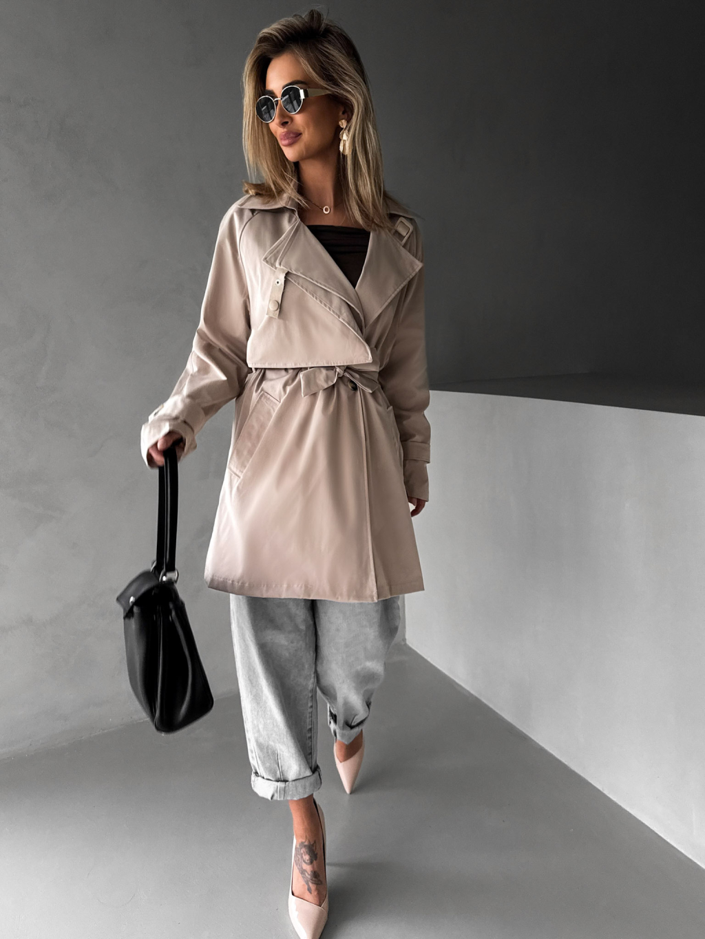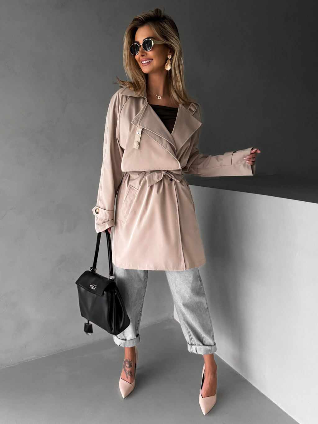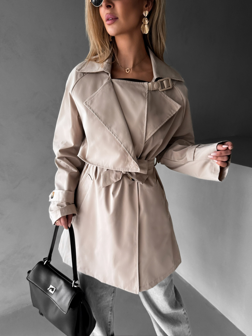 Béžový krátký trenčkot ELFGIGA