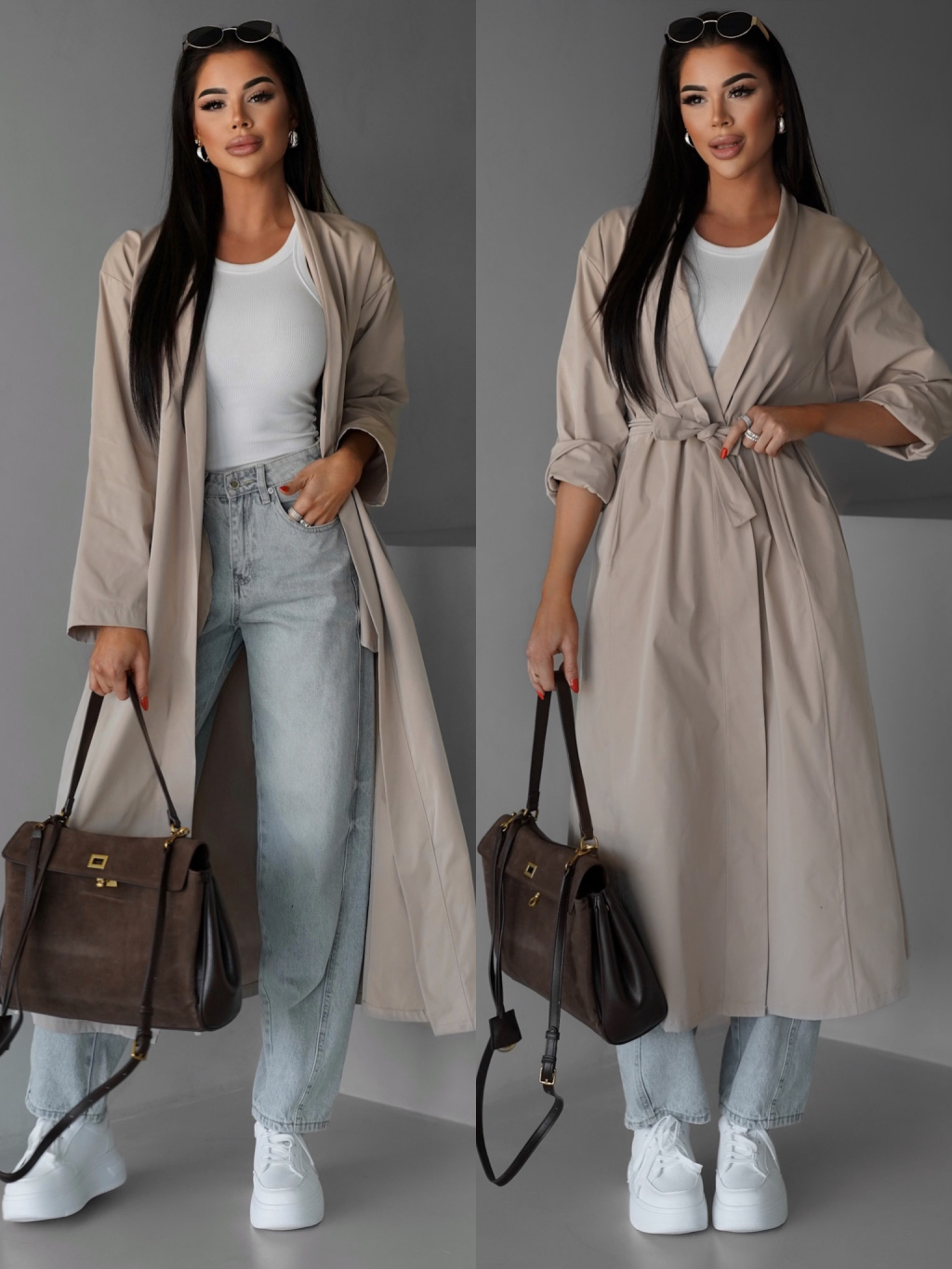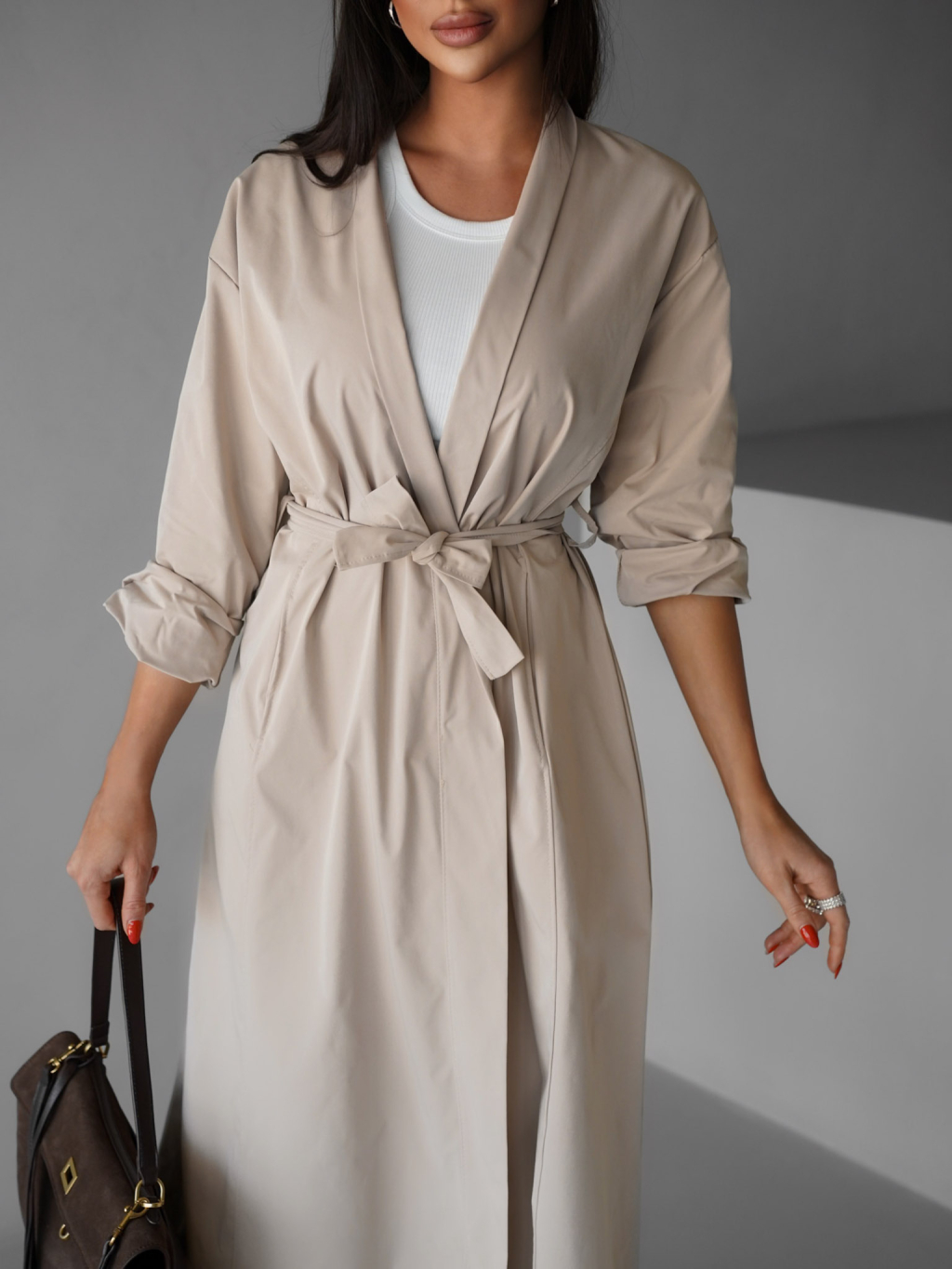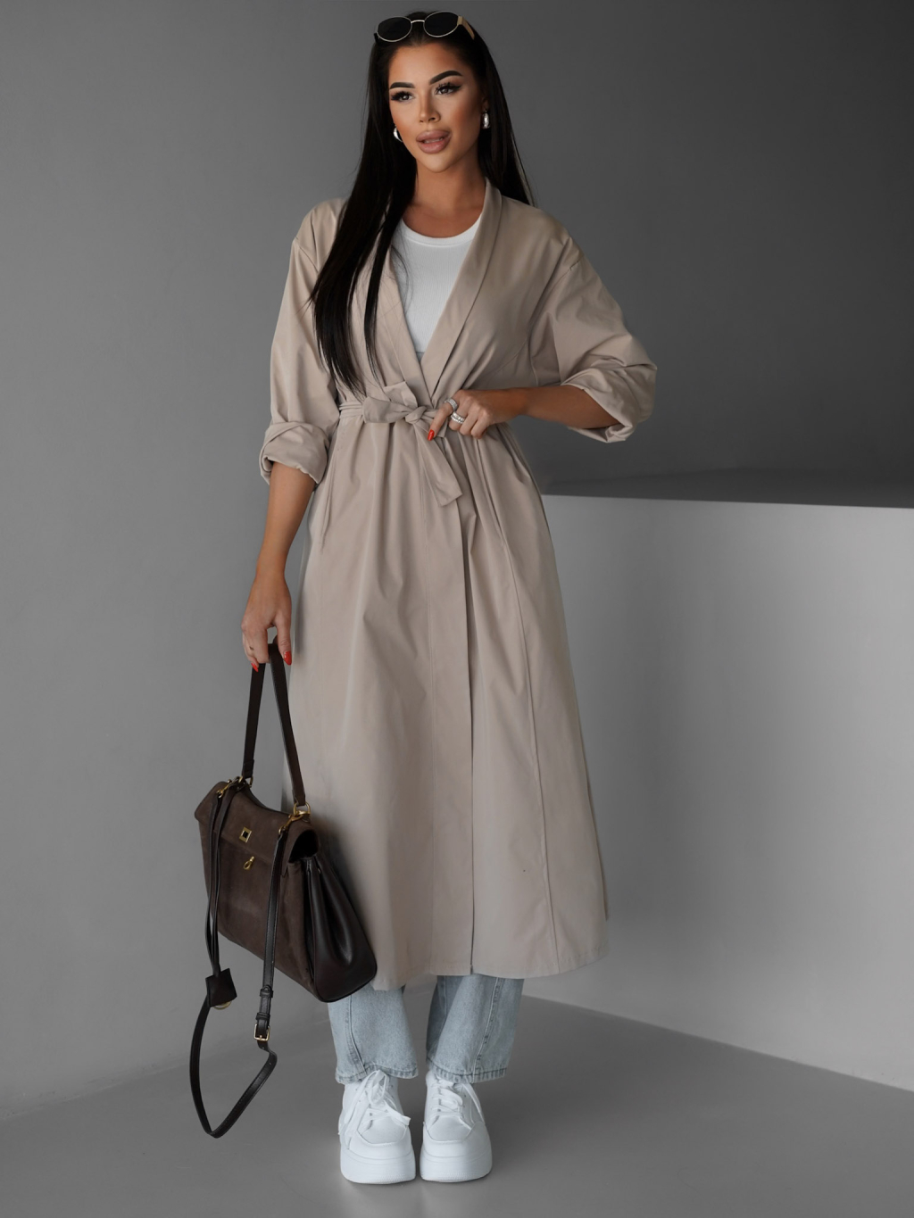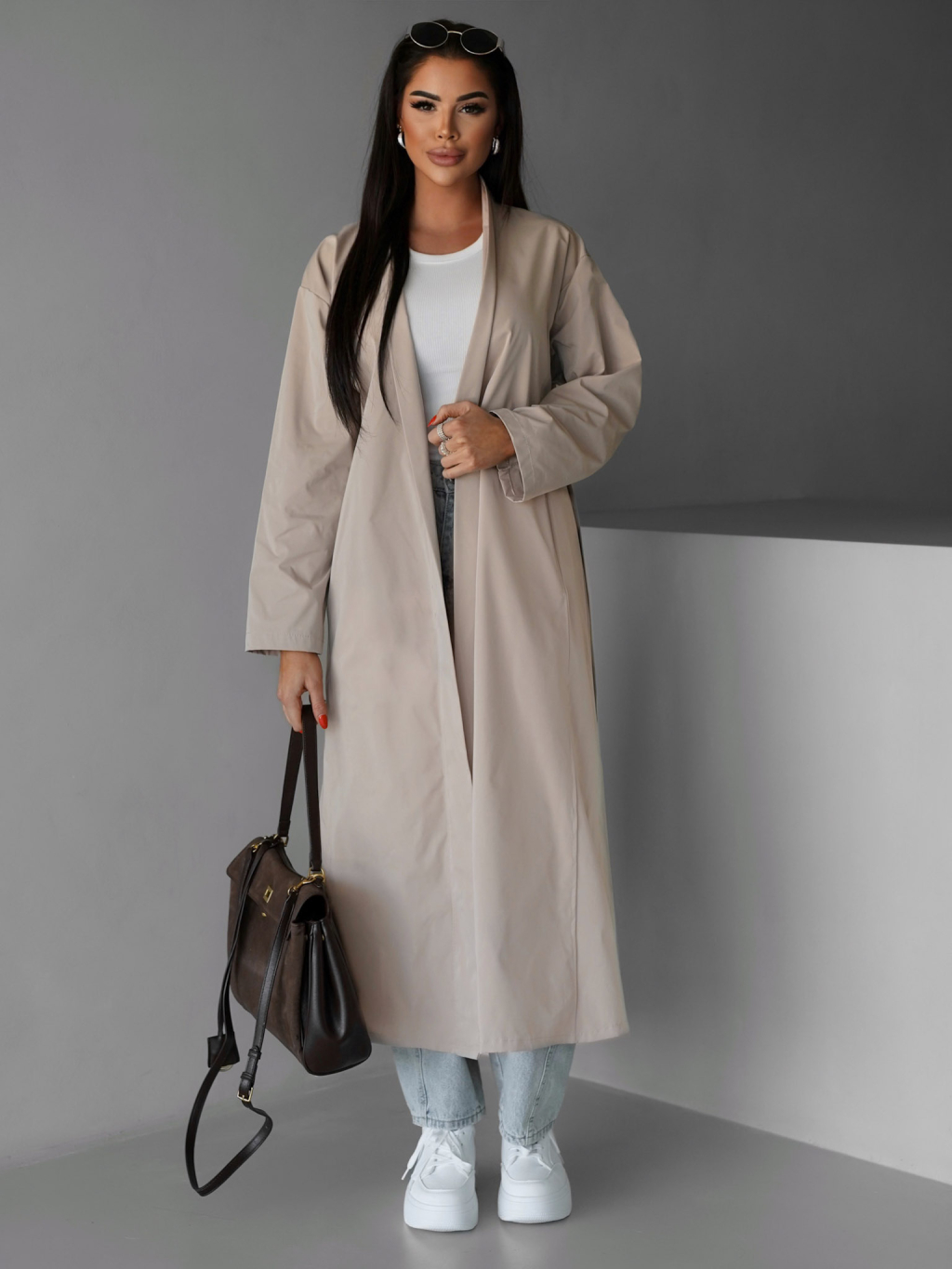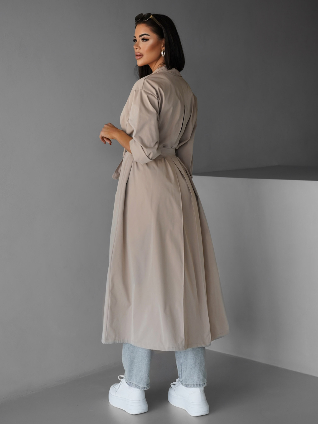 Krémový jarní trenčkot dlouhý kabát AERYTY