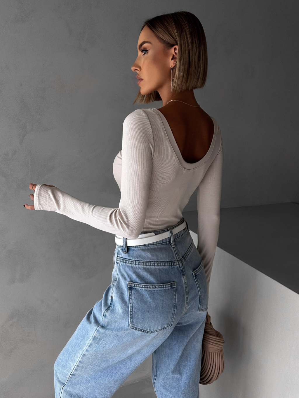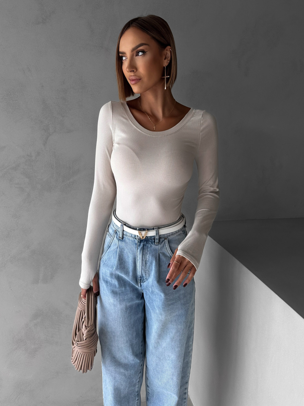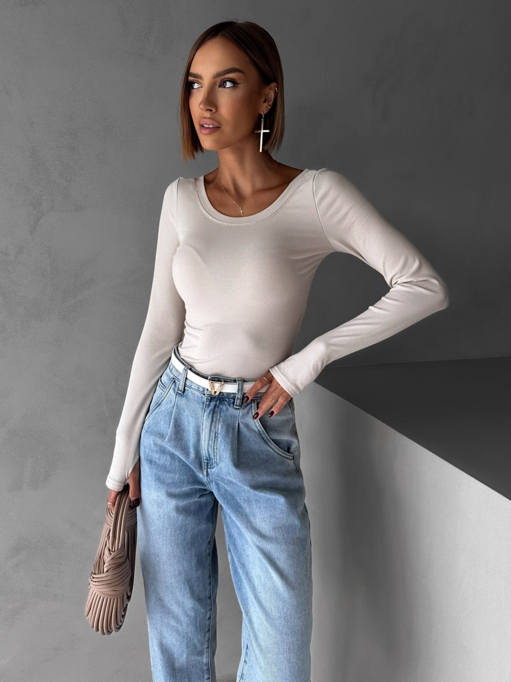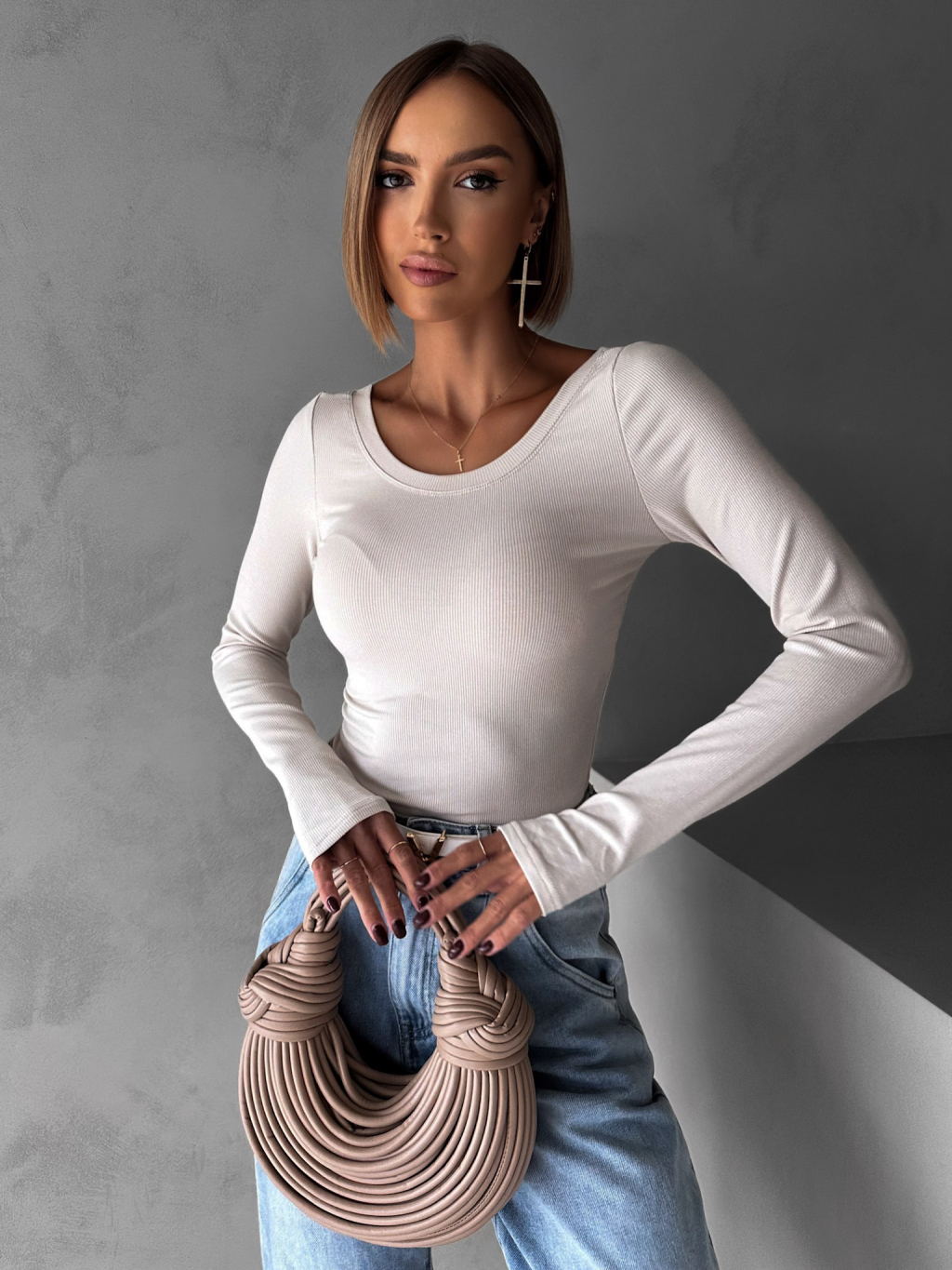 Béžové basic triko MICHAELA s dlouhým rukávem