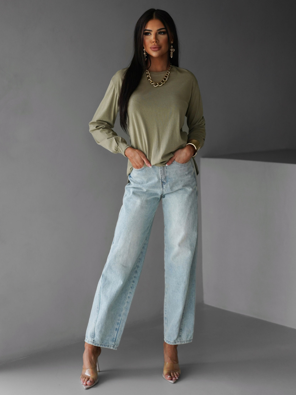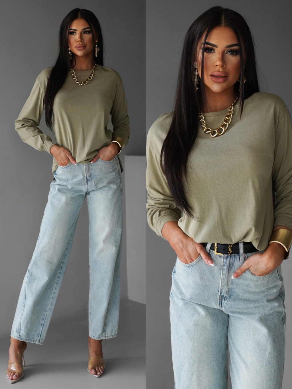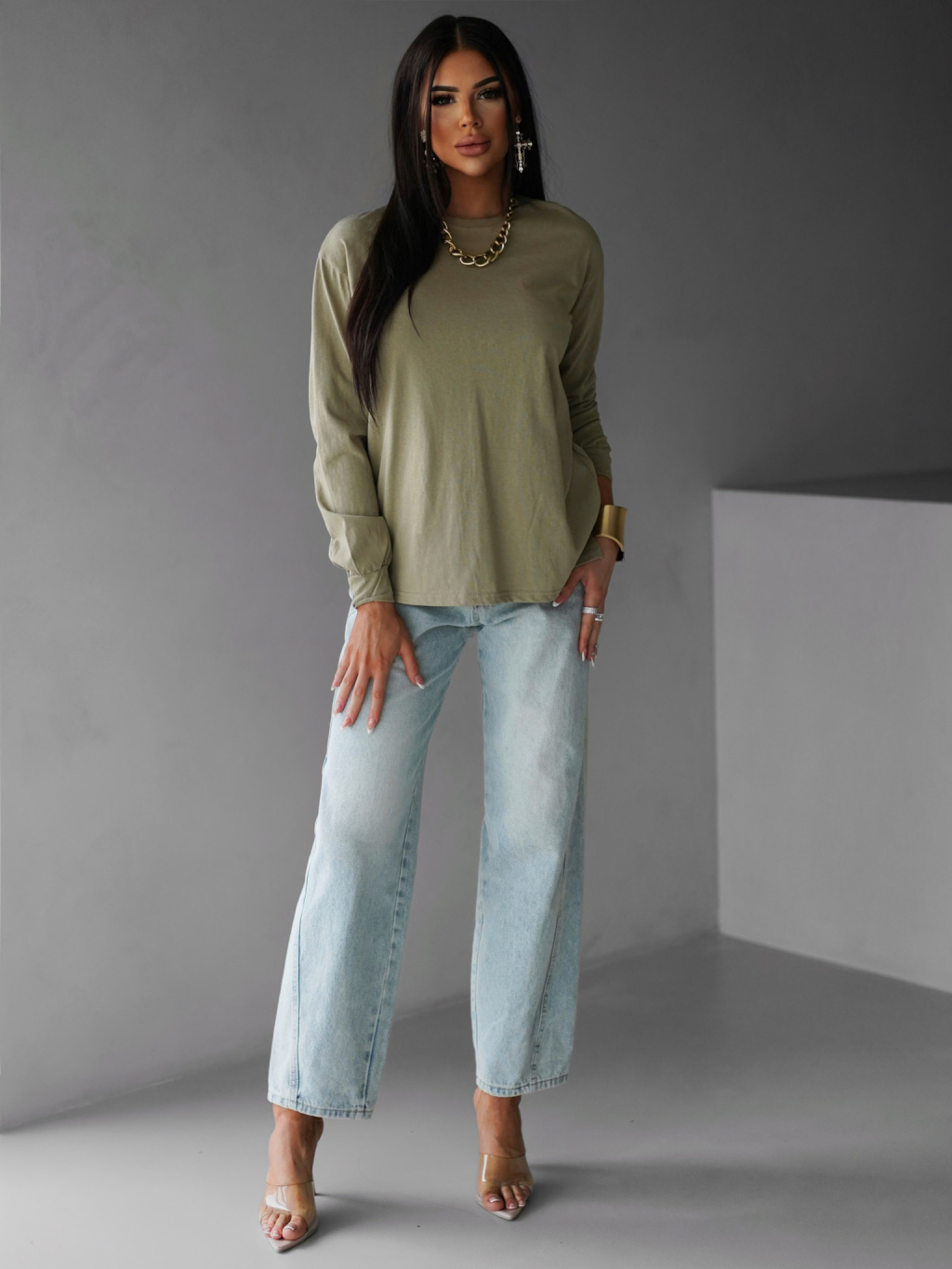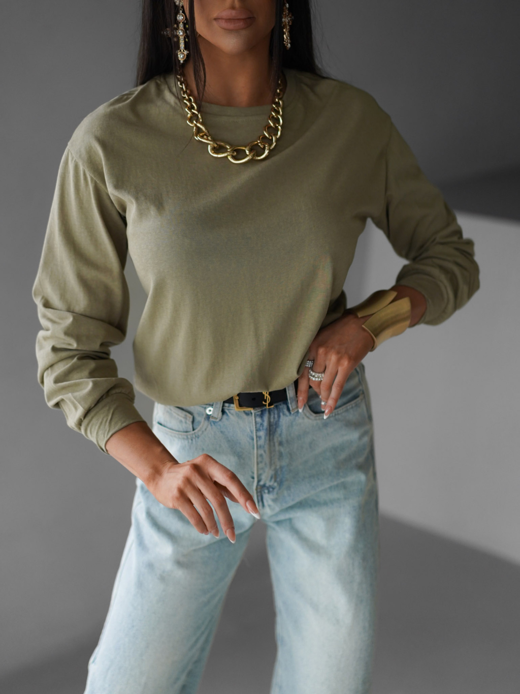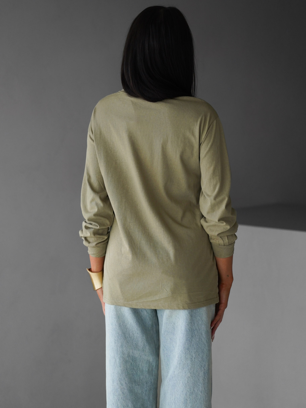 Khaki bavlněné basic dlouhé triko CENKA