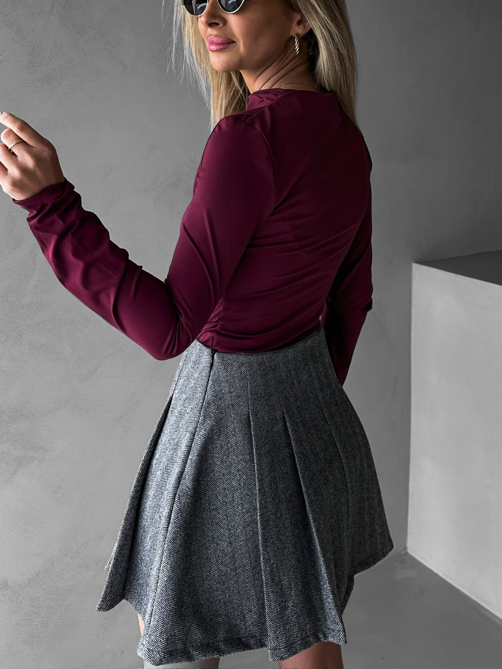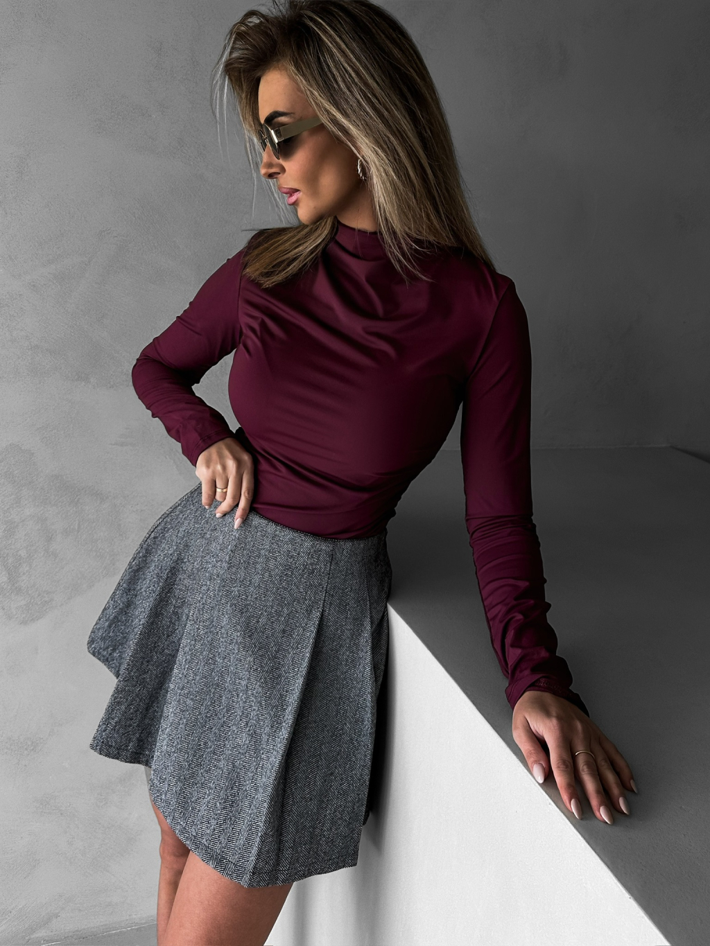 Vínové basic triko SAKLAR s dlouhým rukávem