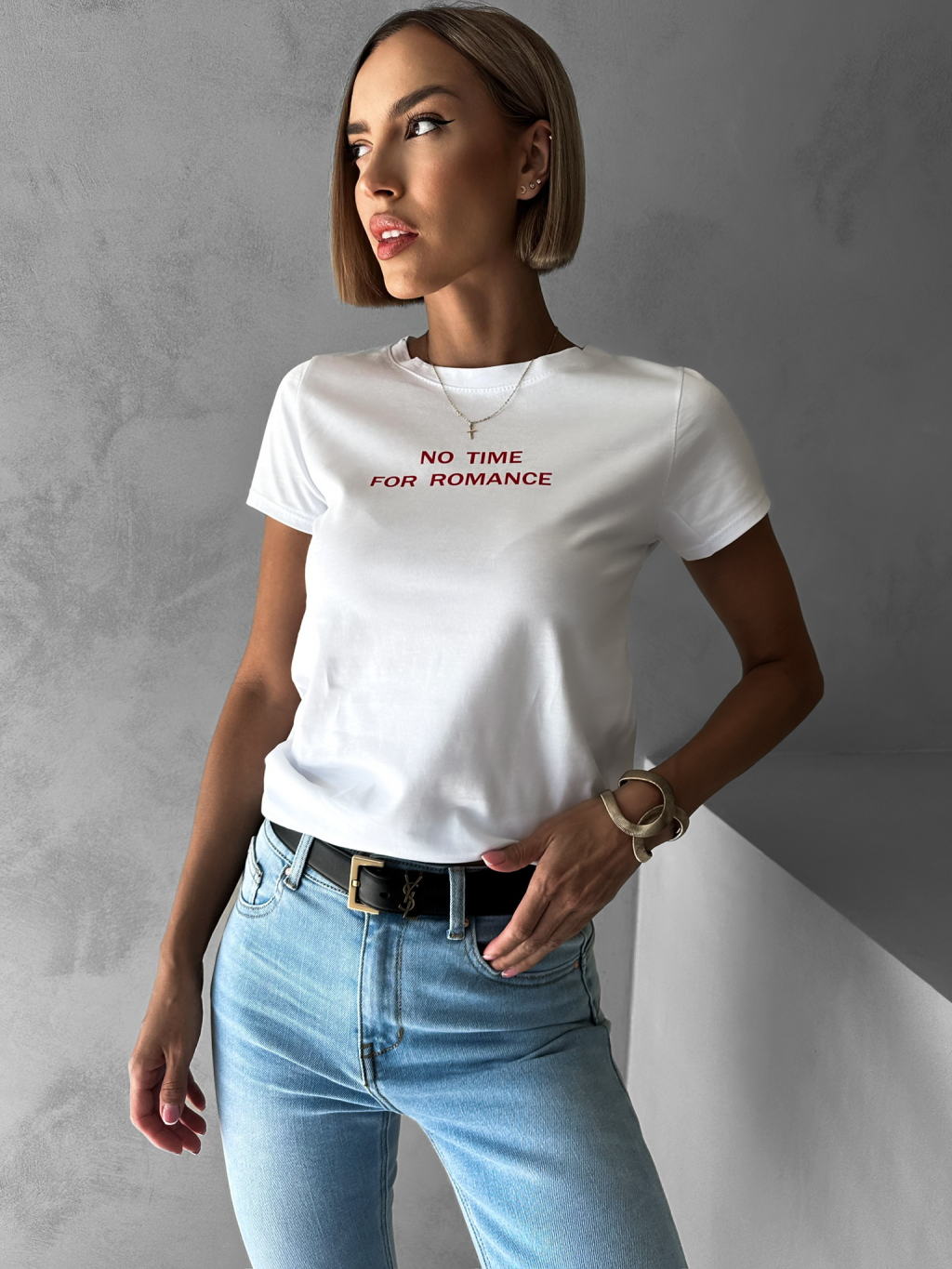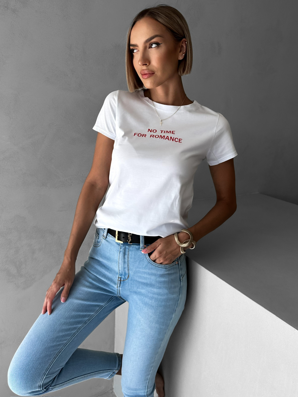 Bílé bavlněné tričko MALCOM s nápisem No time for romance