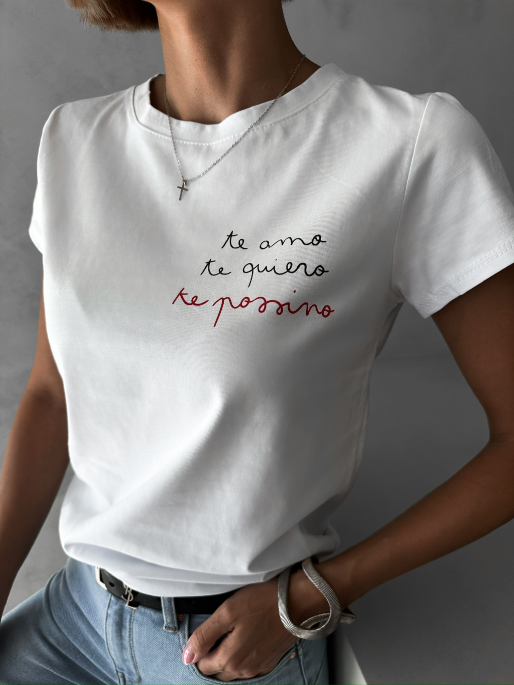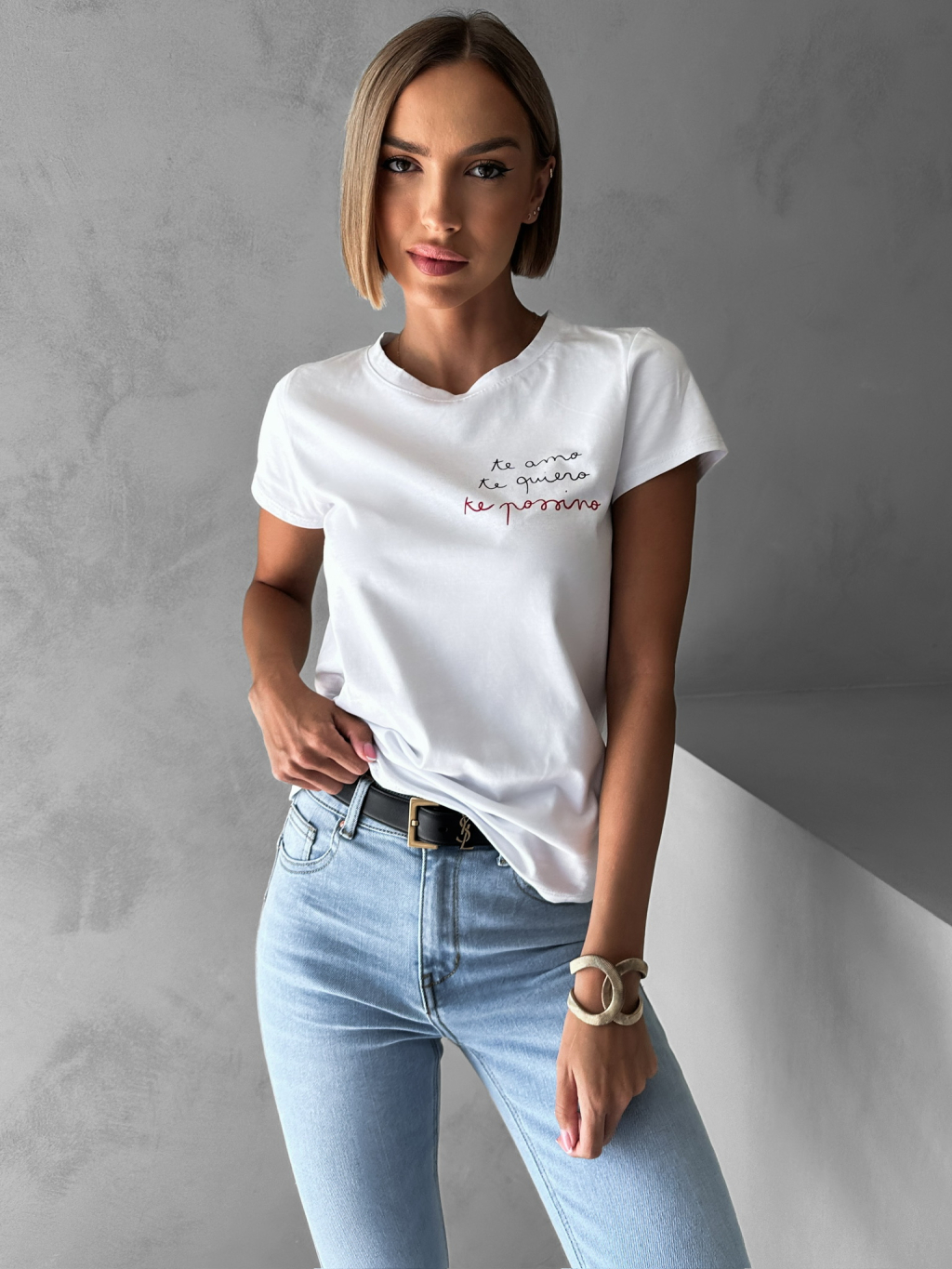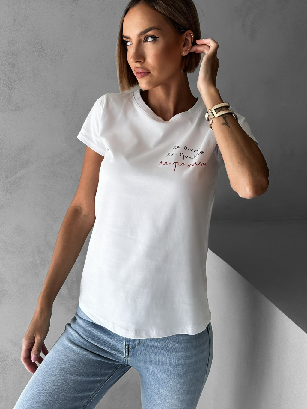 Bílé bavlněné tričko MALCOM s nápisem Te amo
