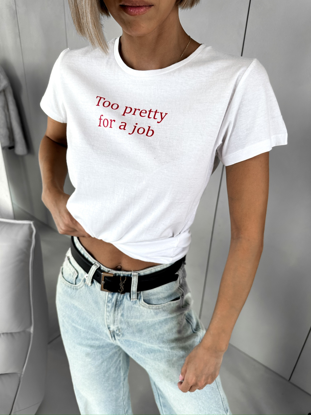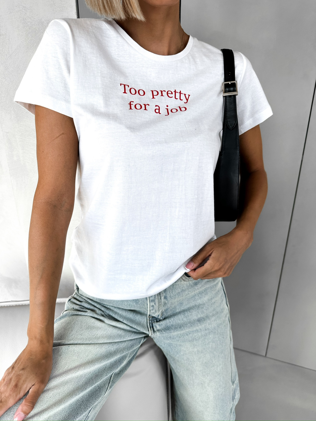 Bílé bavlněné tričko RICHENZA Too pretty for a job