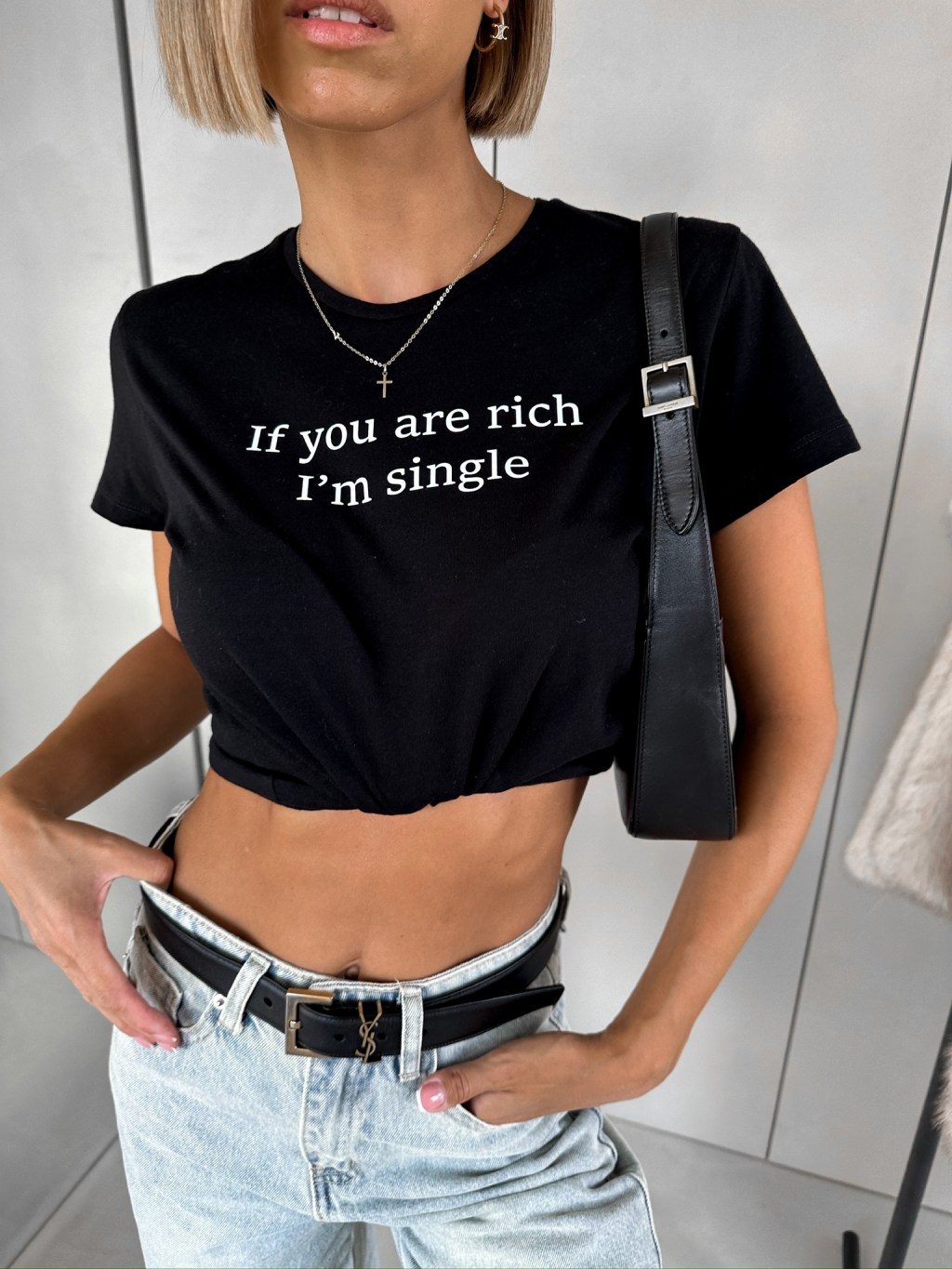Černé bavlněné tričko RICHENZA If you are rich I'm single