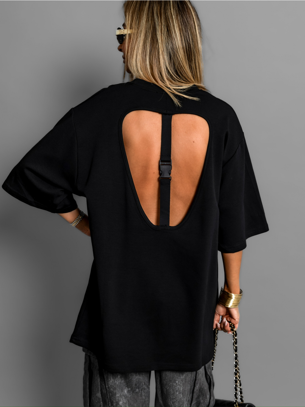 Černé oversize triko PERIKLIS s průstřihem na zádech