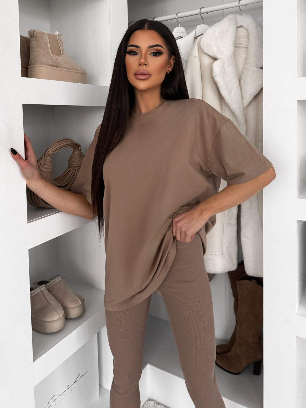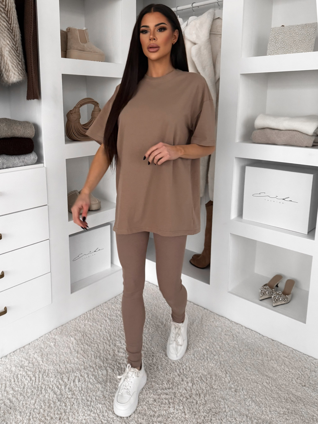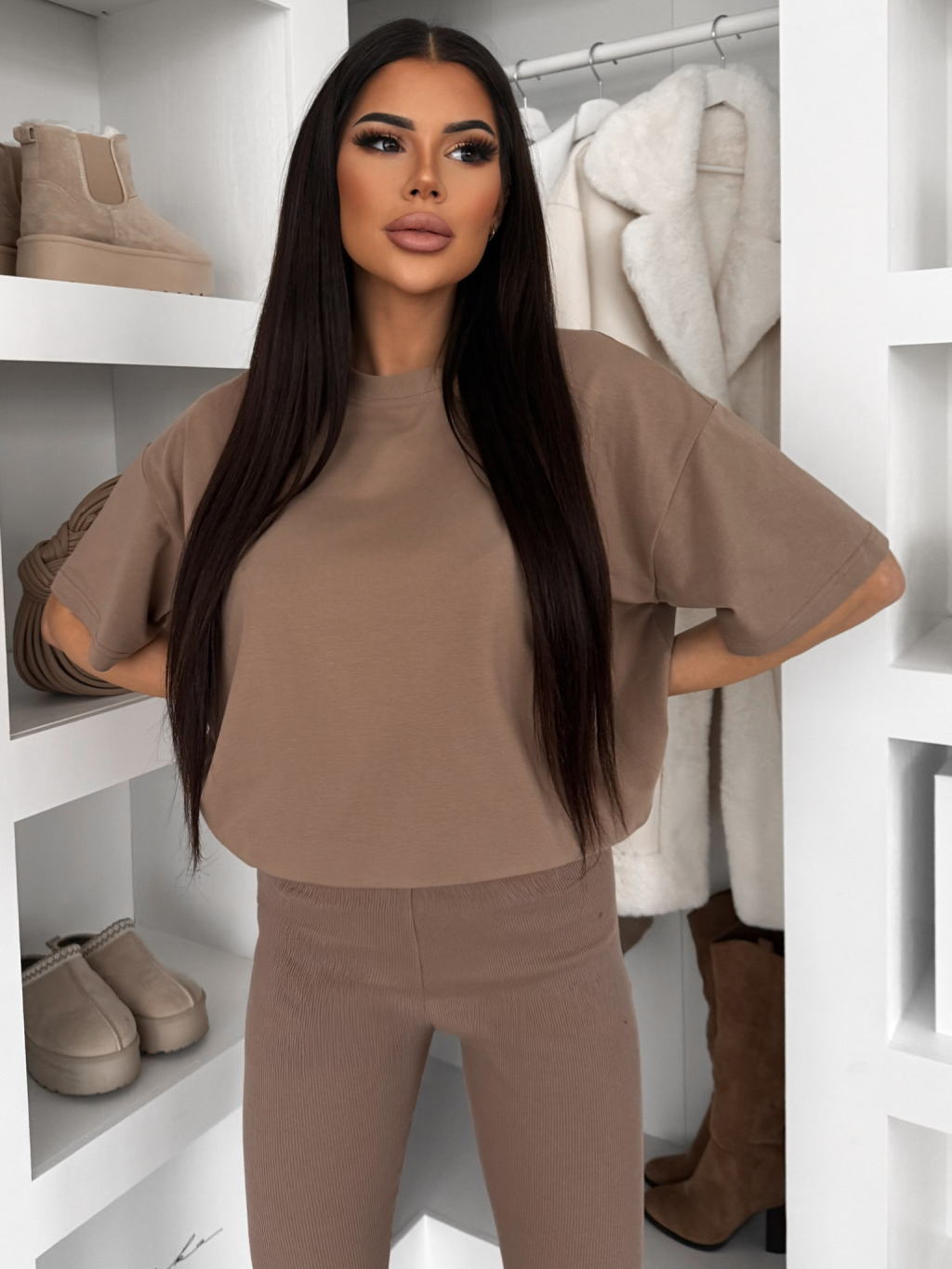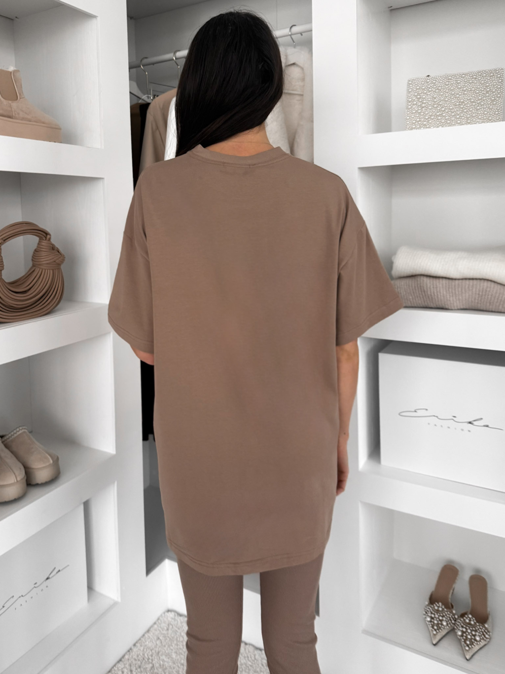 Hnědé bavlněné basic tričko LOVETE s krátkým rukávem
