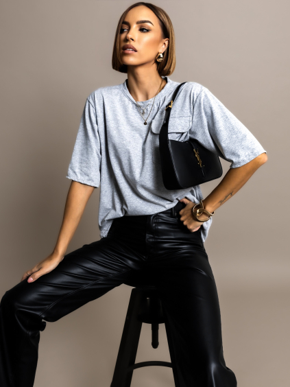 Černé washed oversize tričko ADELIT s krátkým rukávem