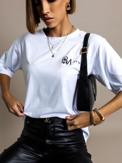 Bílé třpytivé oversize tričko QURDEL s kamínky