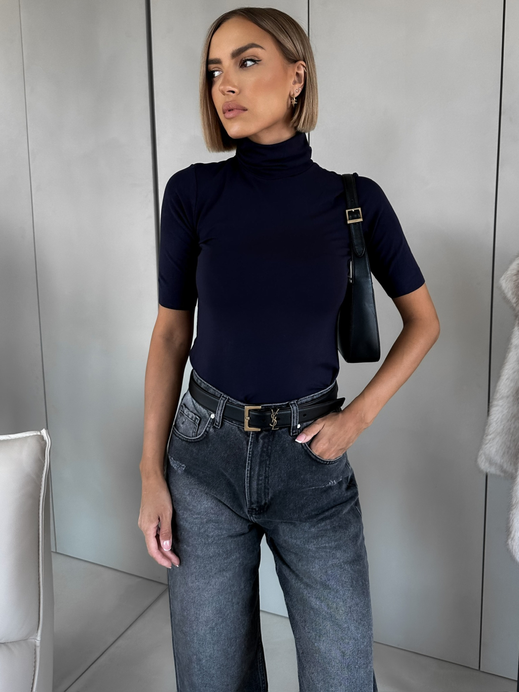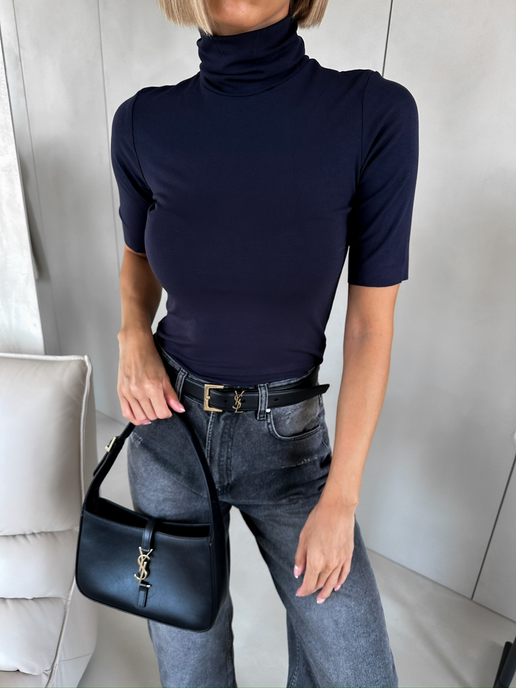 Tmavě modré tričko NEFALI s rolákem