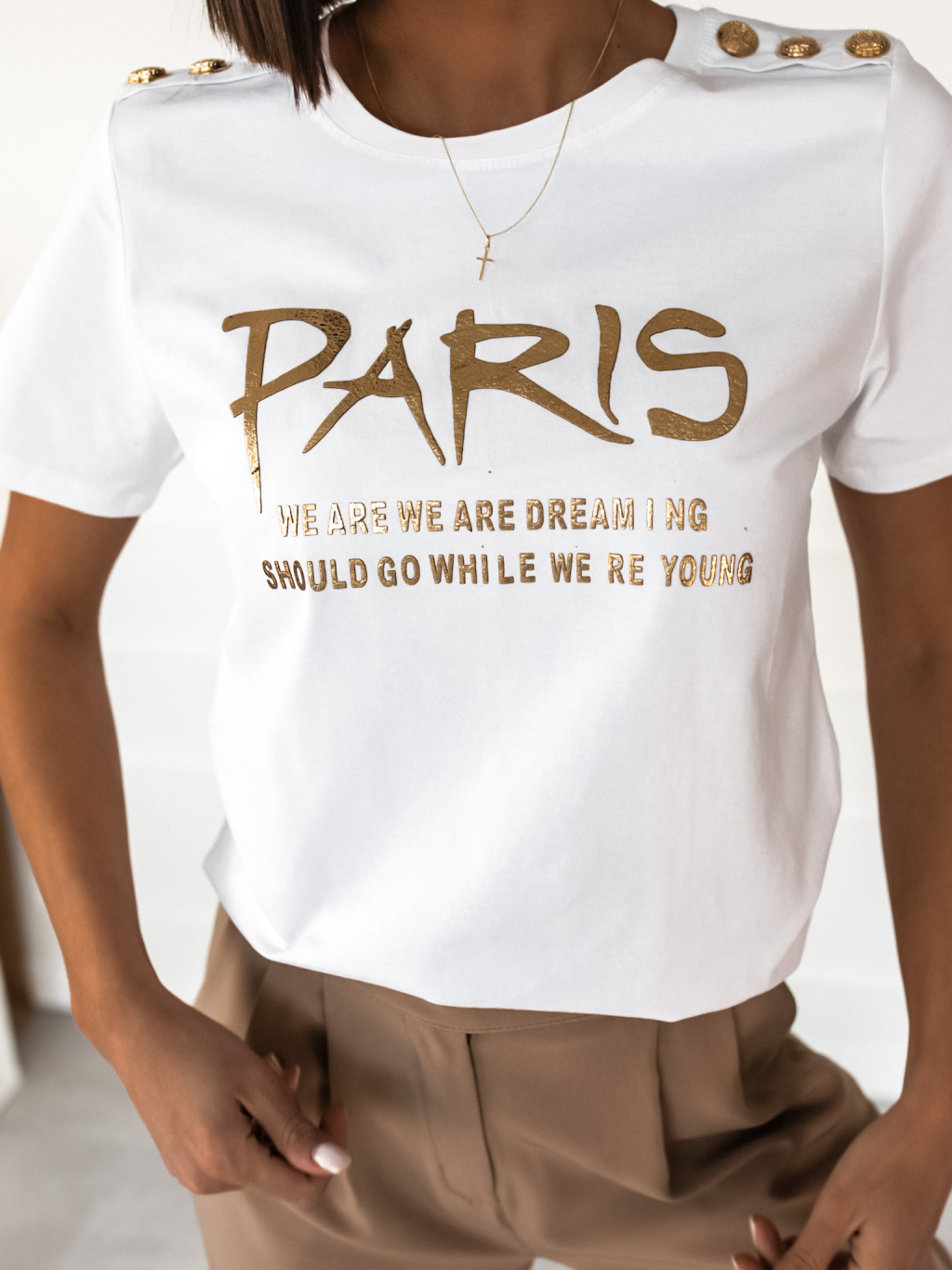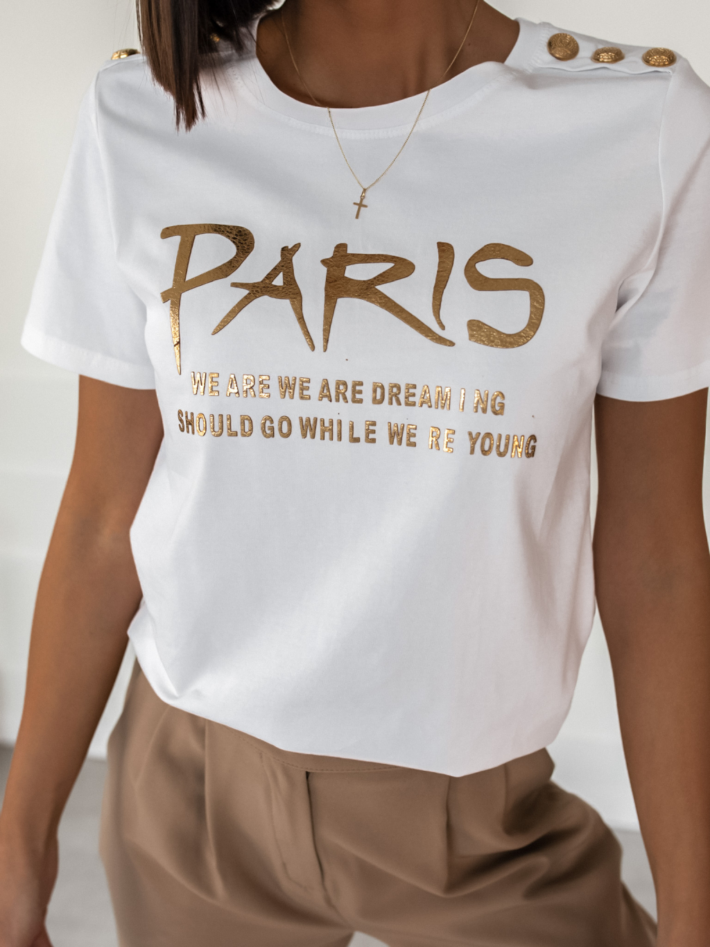 Triko bílé PARIS s krátkým rukávem a zlatým potiskem