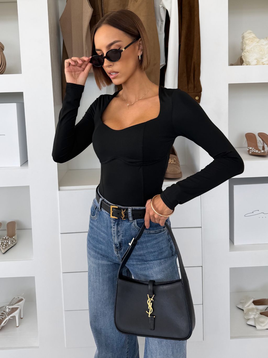 Černé elegantní korzetové triko RIVANZA s výstřihem