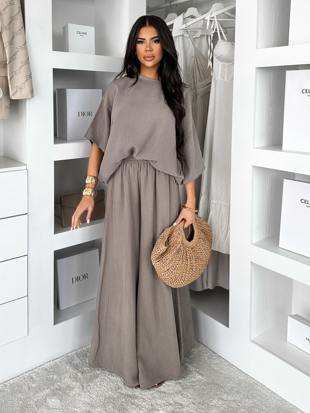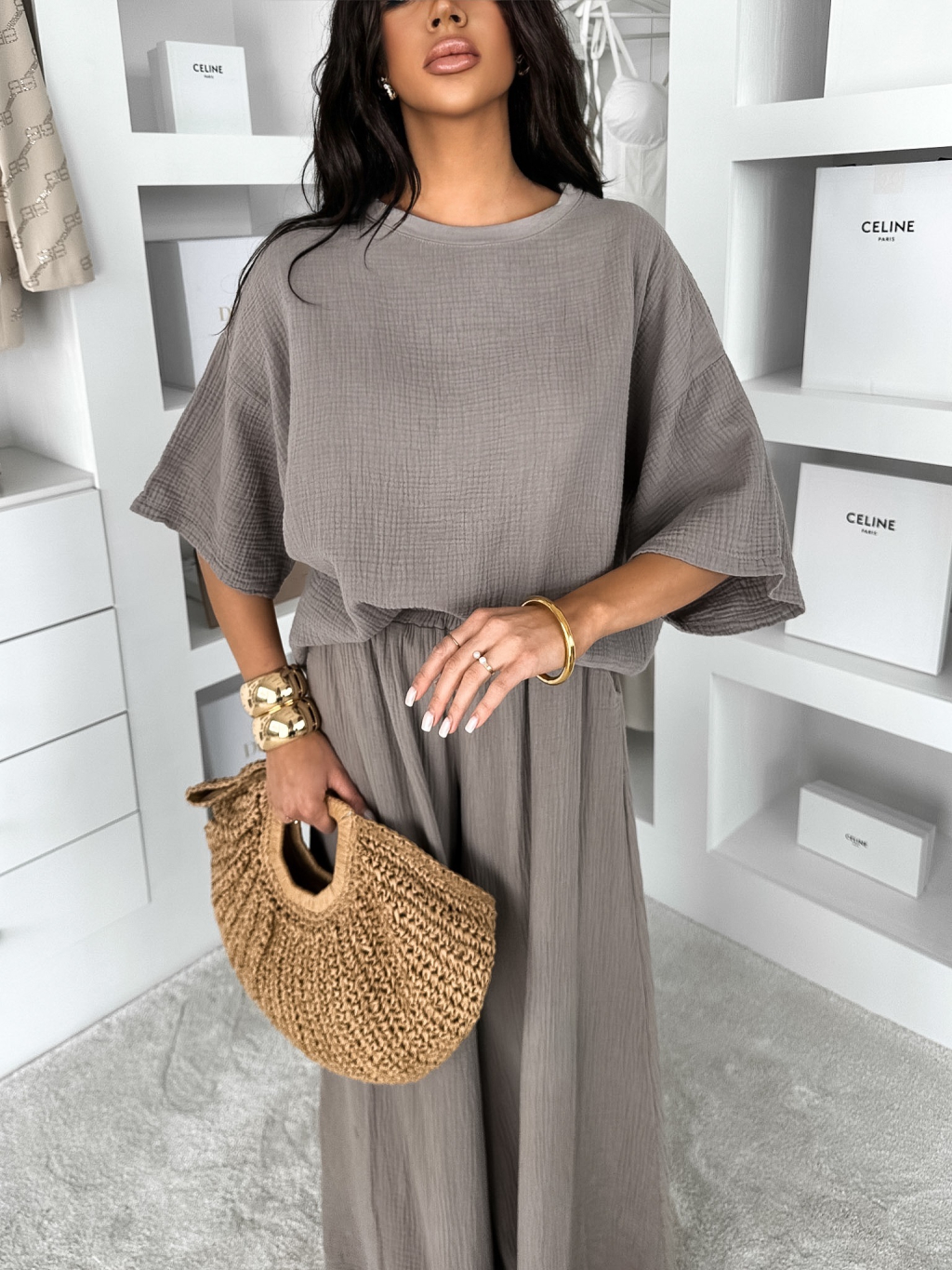 Hnědé mušelínové oversize tričko MILORA
