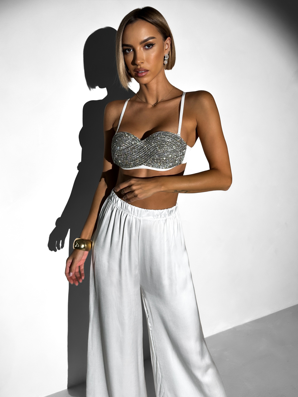 Bílý luxusní kamínkový top STRIVIA