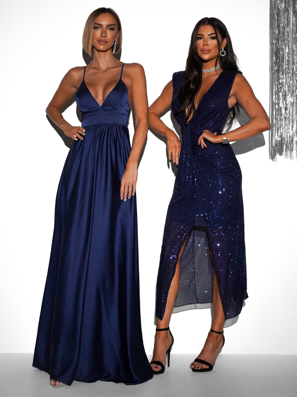 Tmavě modré třpytivé midi šaty CHORILAT s výstřihem