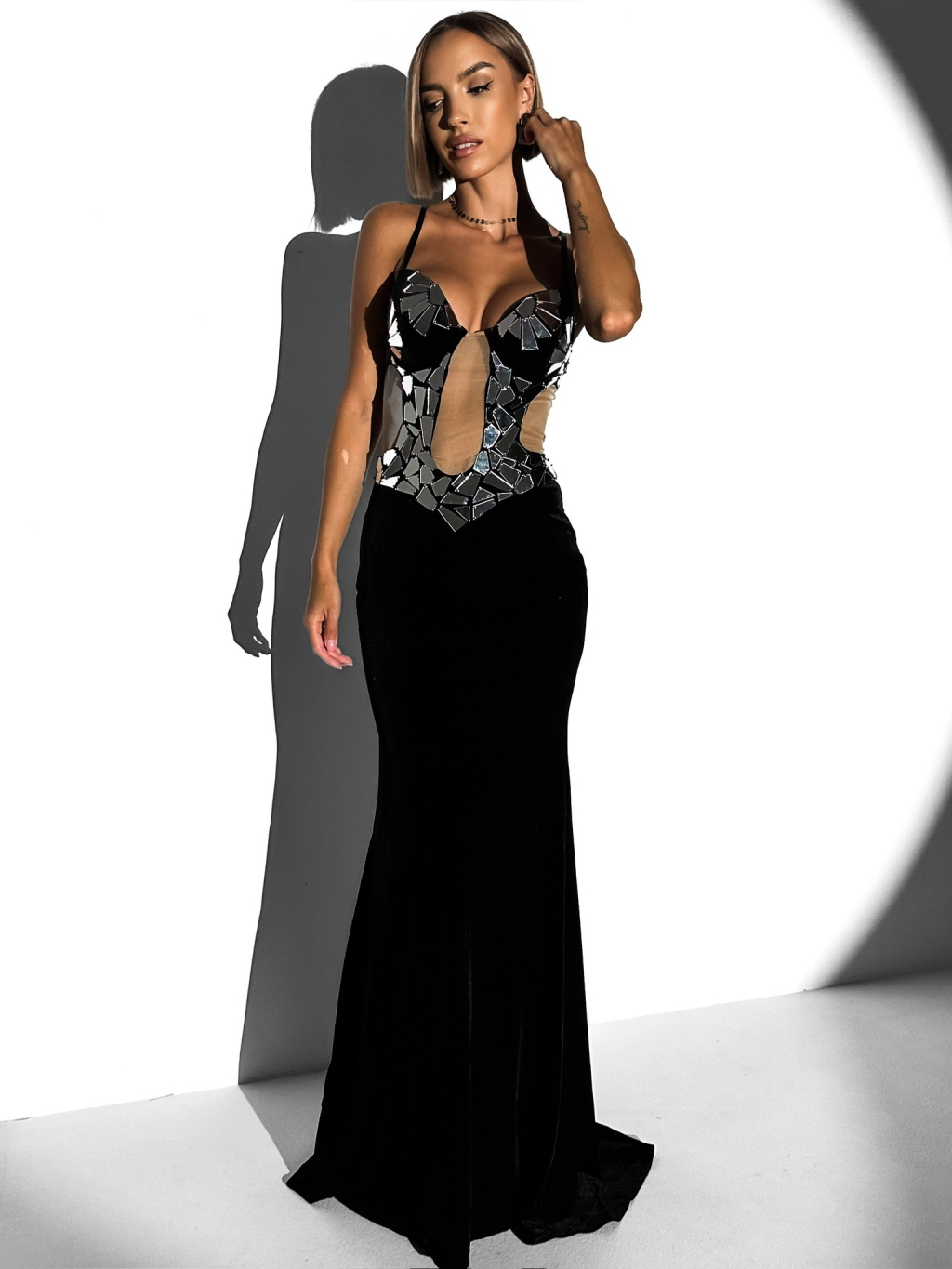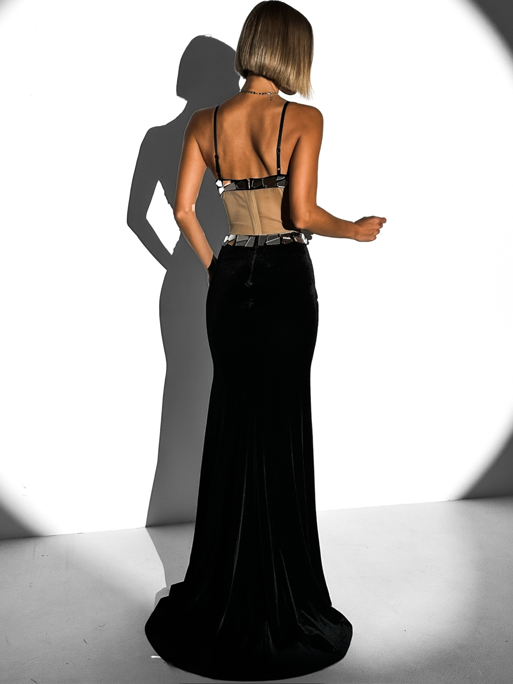 Černé dlouhé večerní šaty BOWYT s výstřihem