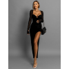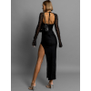 Černé třpytivé večerní šaty FEMIOS se zdobenými rukávy