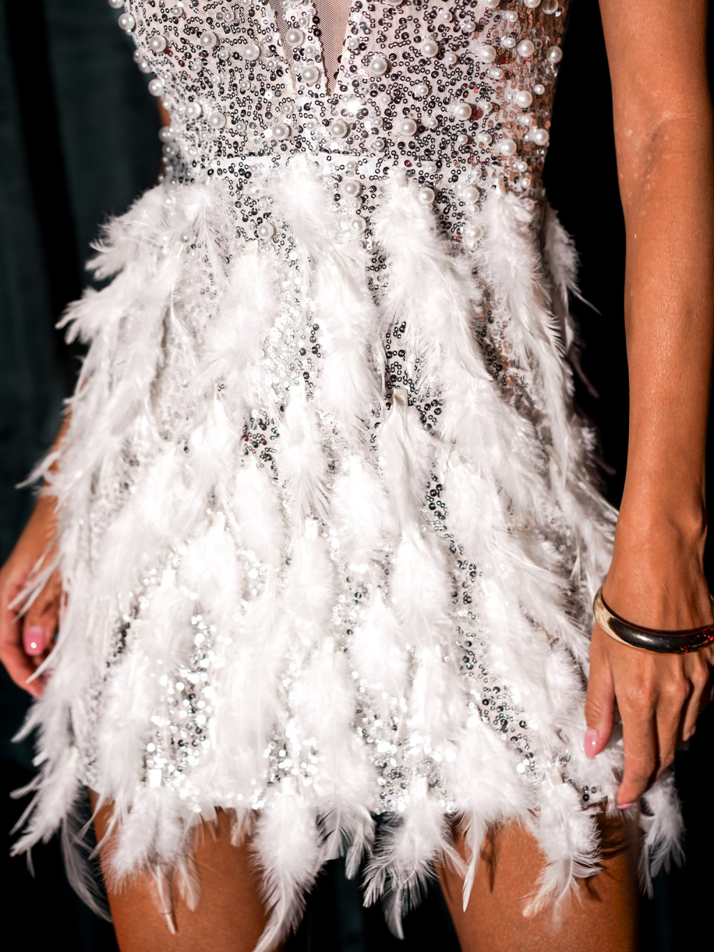 Luxusní stříbrné koktejlové šaty BOZANA s peříčky