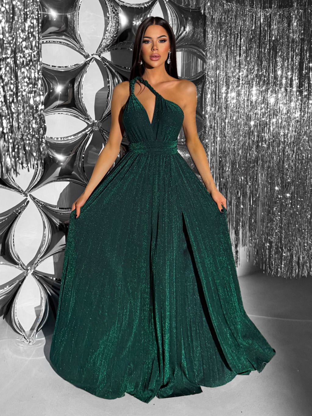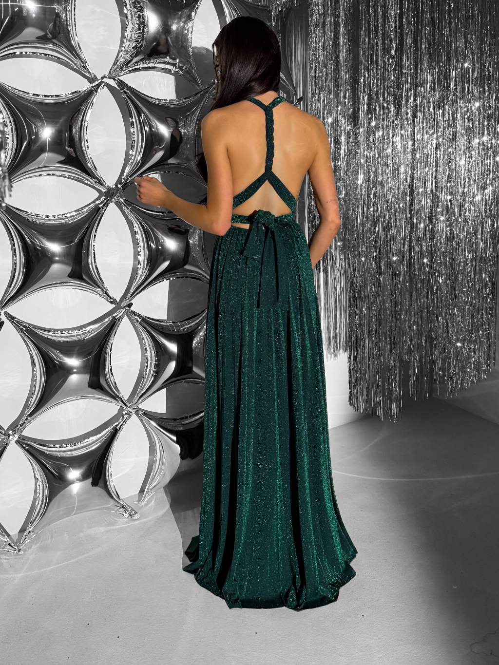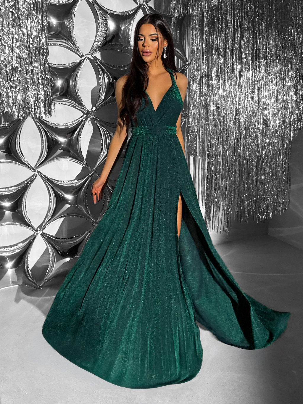 Smaragdové dlouhé vázací variabilní společenské šaty CUPAUCA