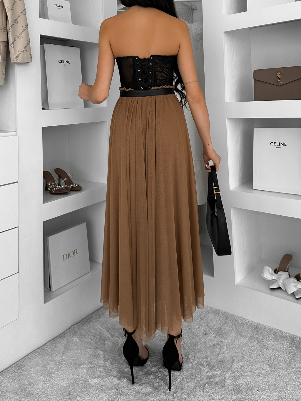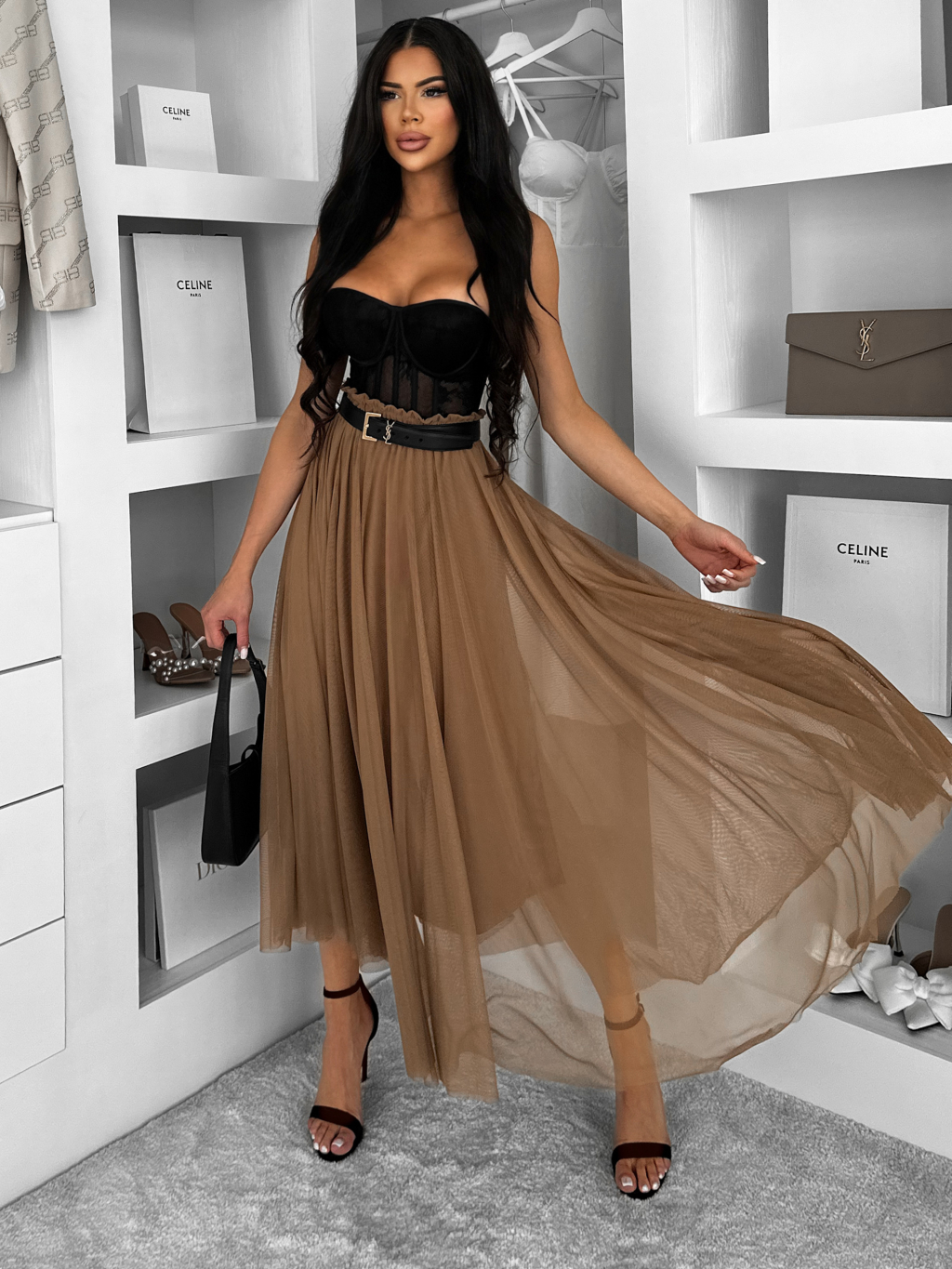 Hnědá tylová midi sukně NEXORA