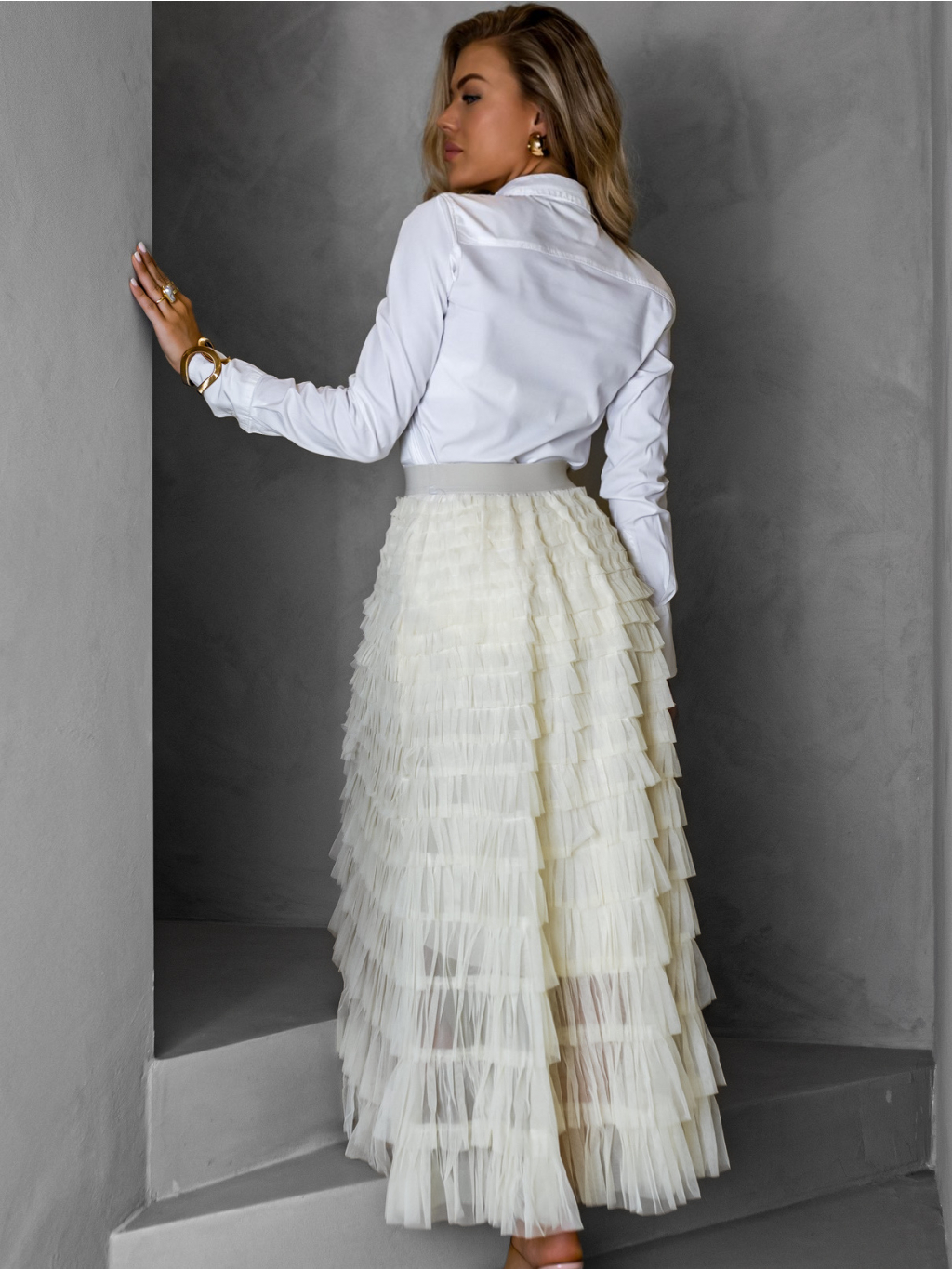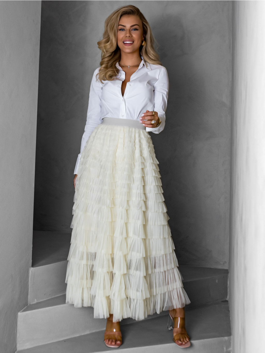 Krémová dlouhá tylová sukně CARVERY s volánky