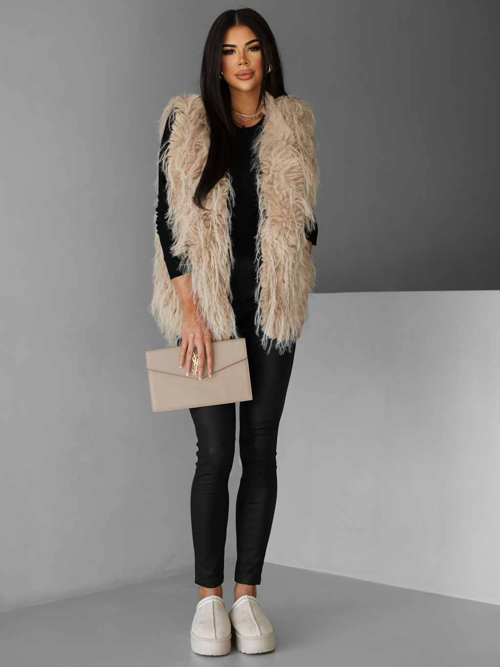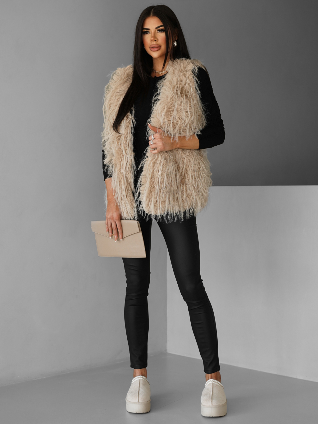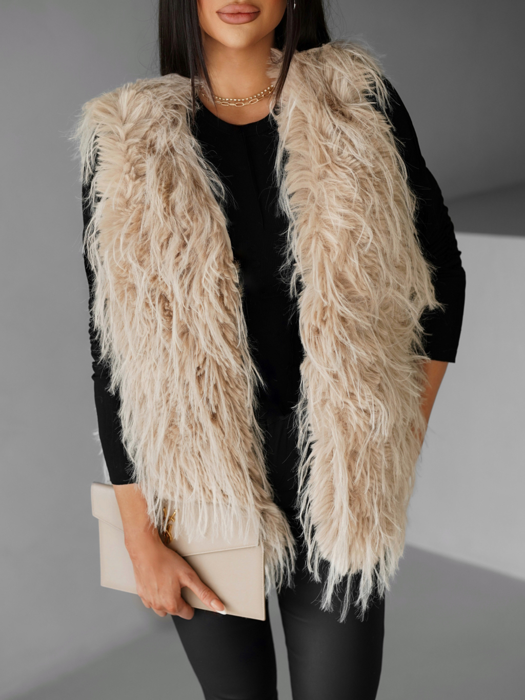 Béžová faux fur kožíšková vesta NERINGA