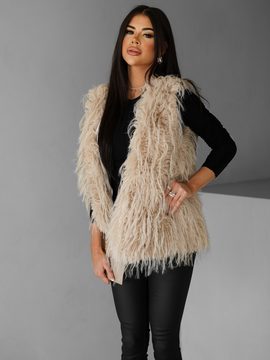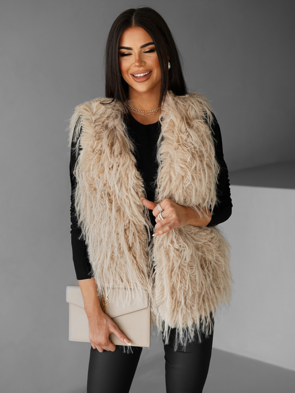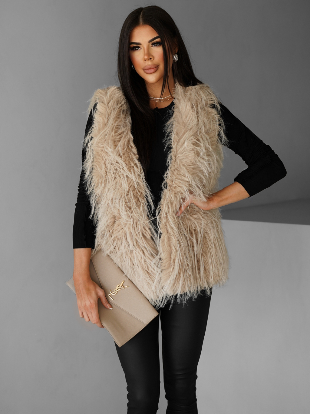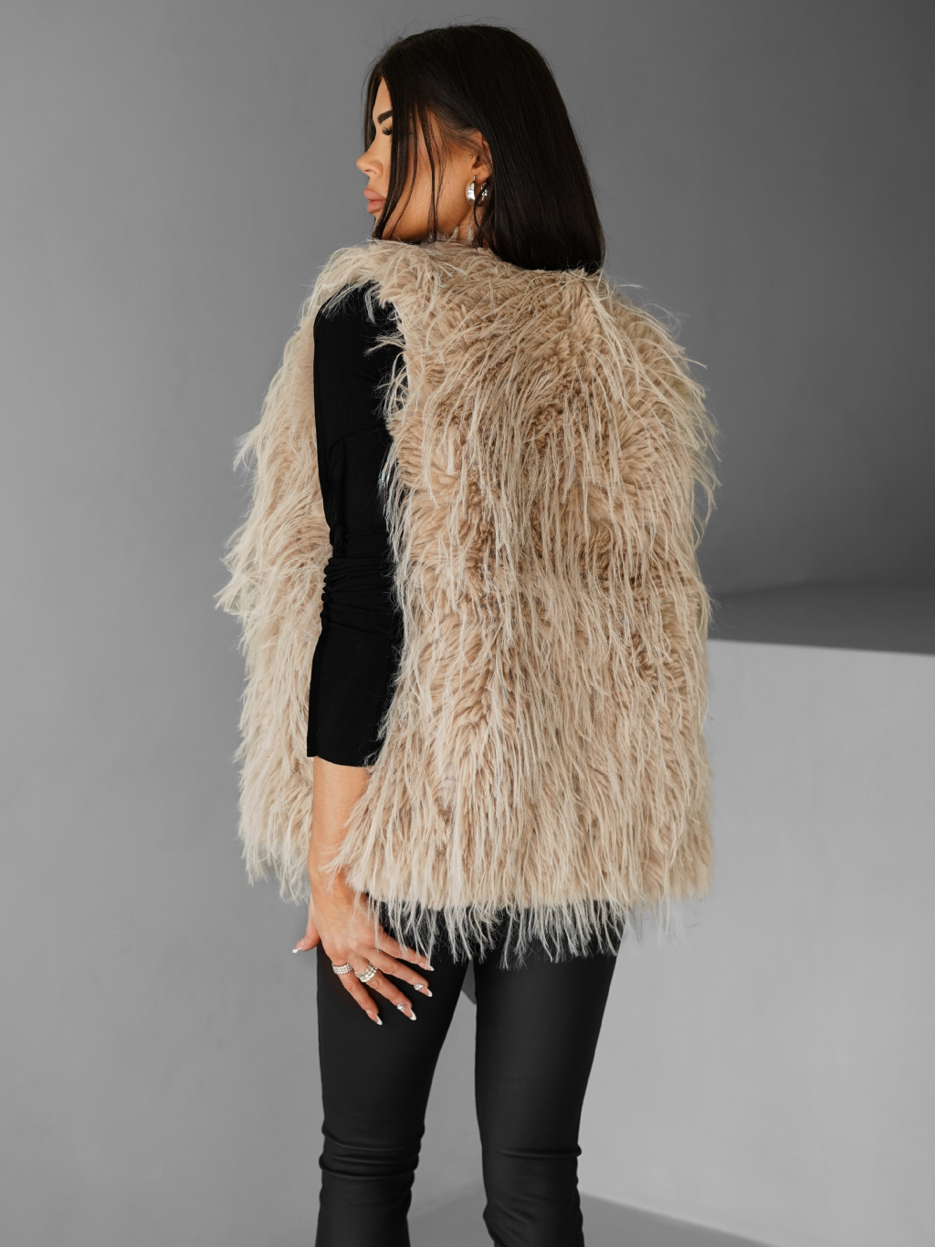Béžová faux fur kožíšková vesta NERINGA