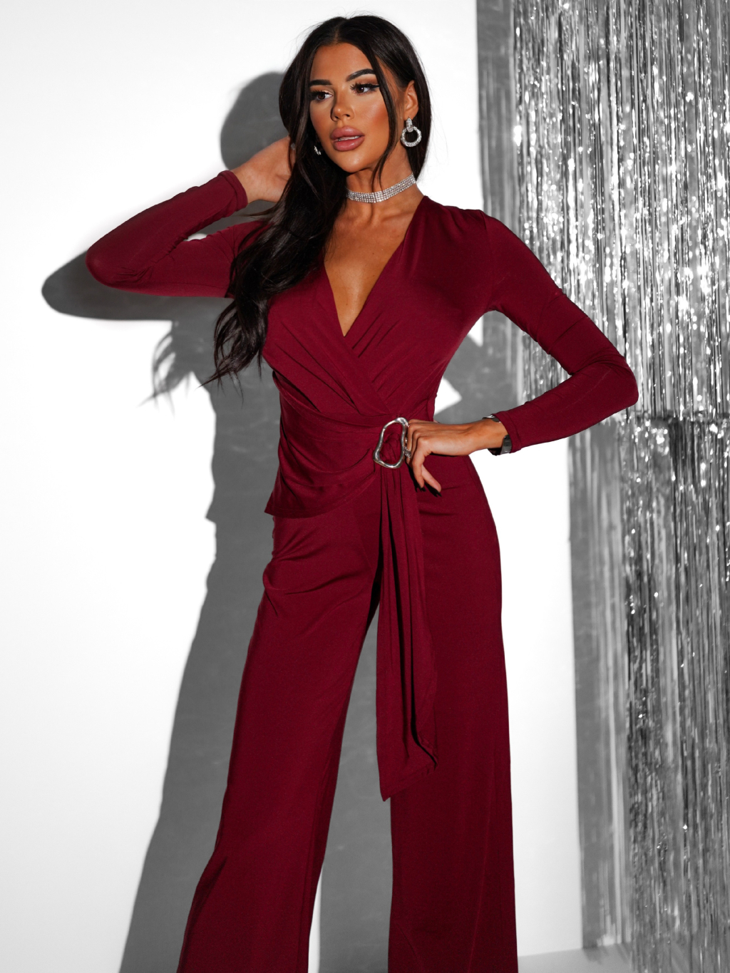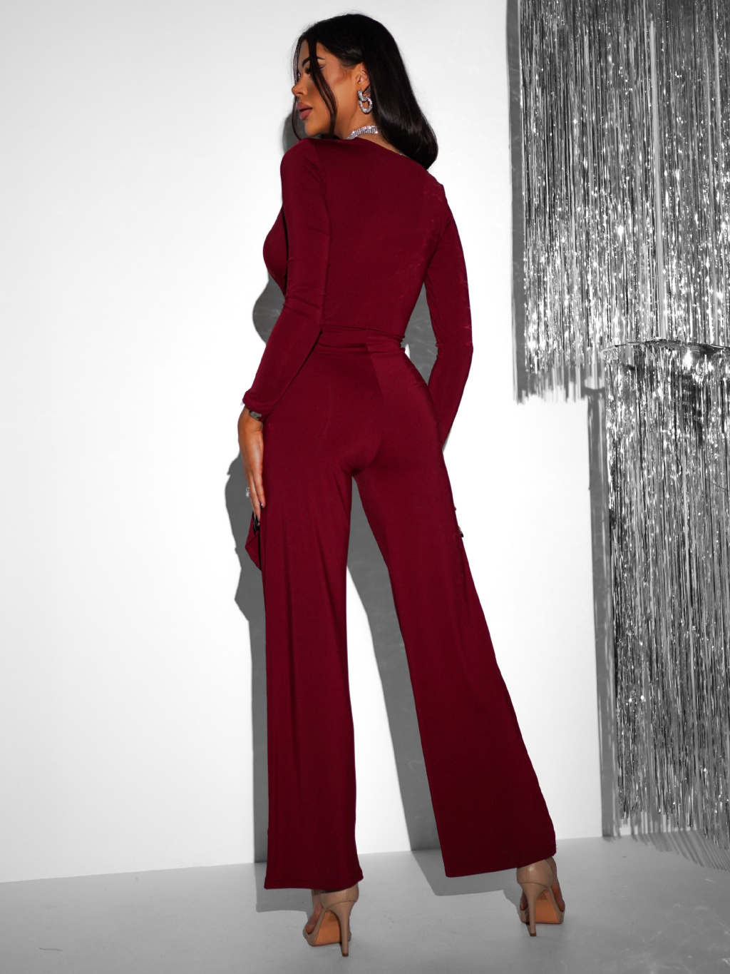 Bordó elegantní společenský overal BAOTRA