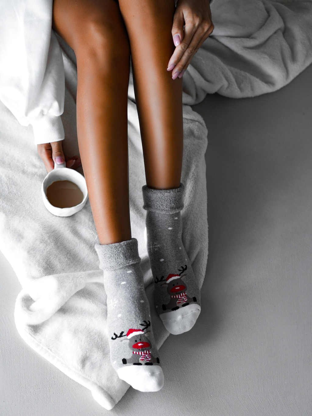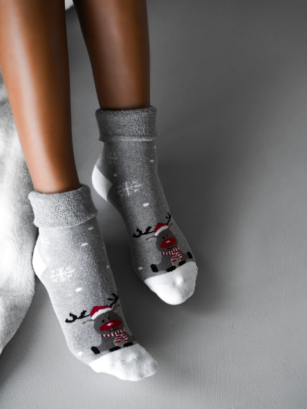 Šedé vánoční ponožky BLANKET se sobem