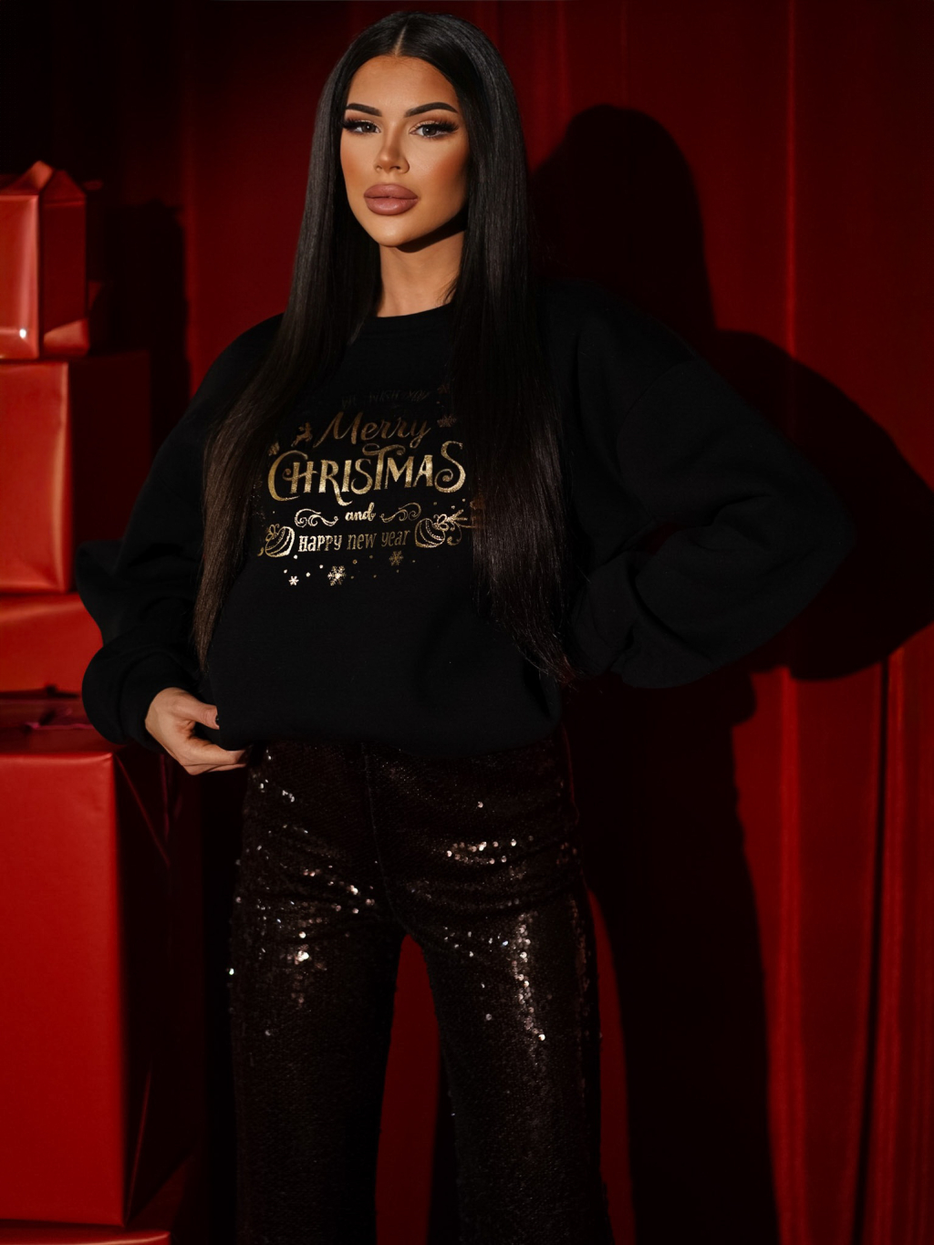 Černá vánoční mikina CAROL s nápisem
