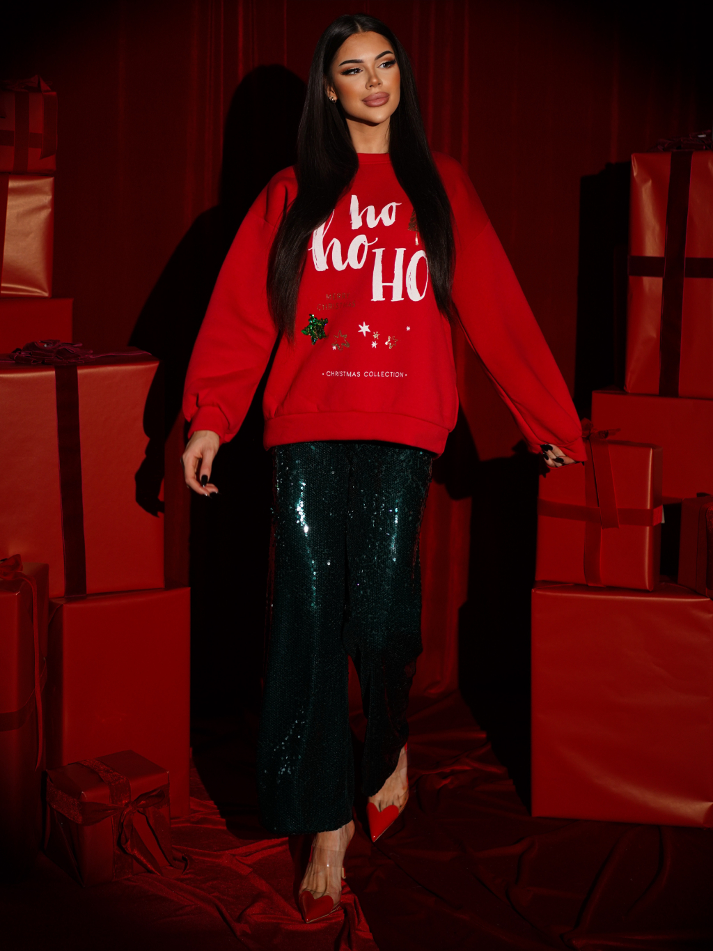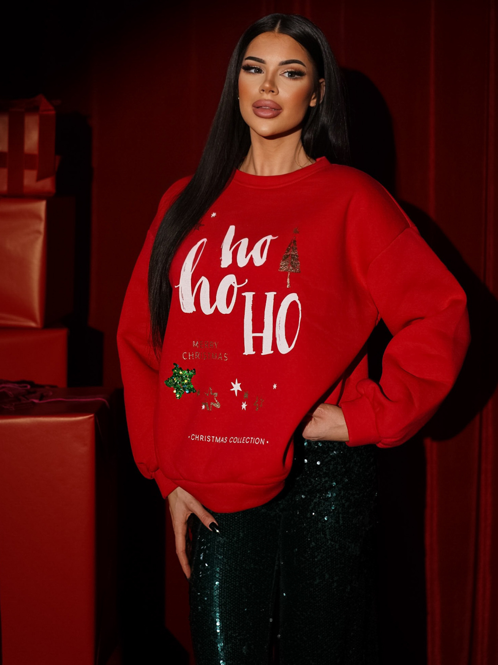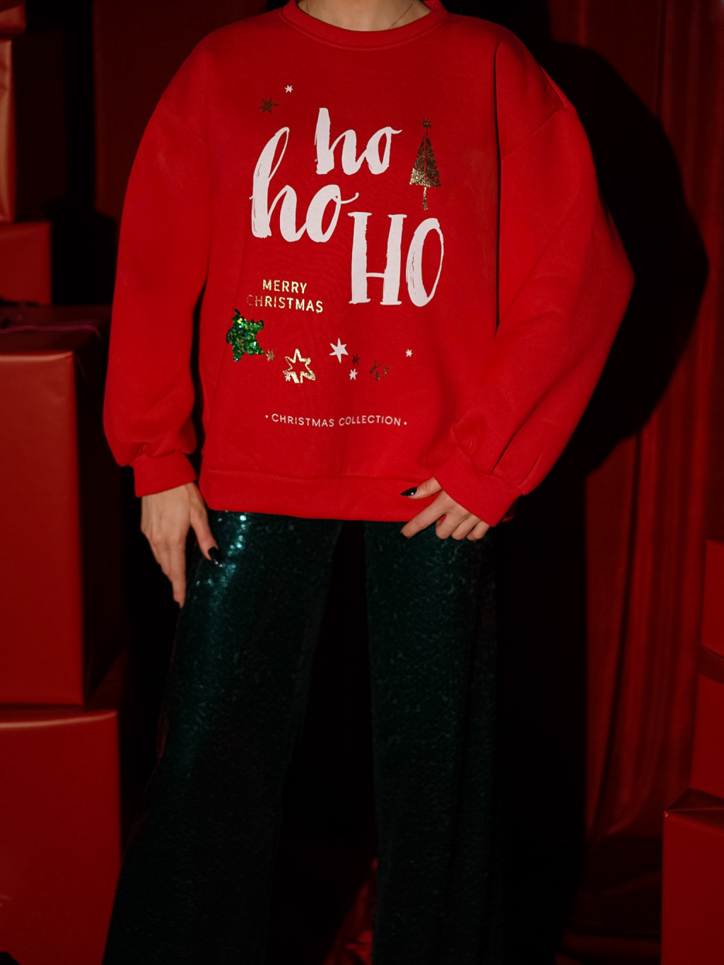 Červená vánoční mikina CARPO s nápisem